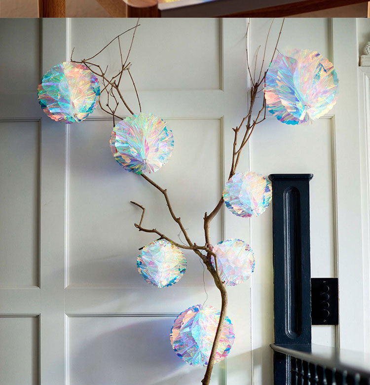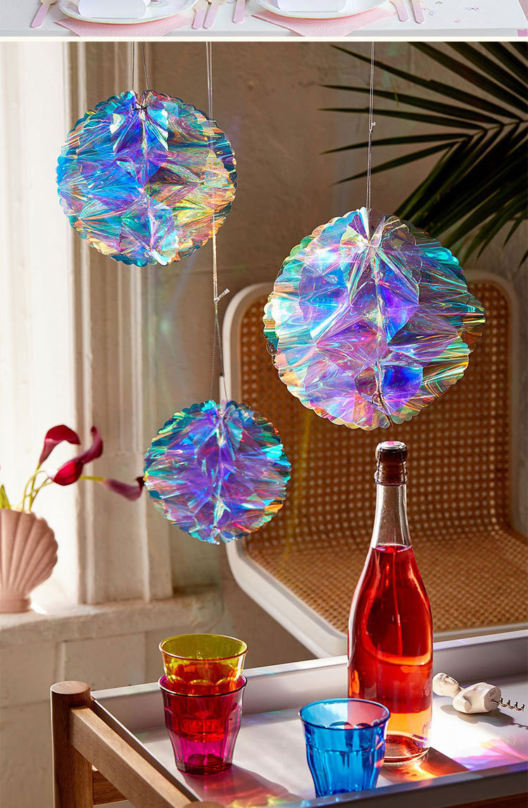 Iridescent Film Honeycomb Ball Stickers Paper Hanging Birthday Decoration Drop Ornament Wedding Decor Party Supplies Event on - Иридесцентная пленка медового шара с пчелиным сотом на наклейках бумажных подвесках для декора дня рождения украшения свадеб