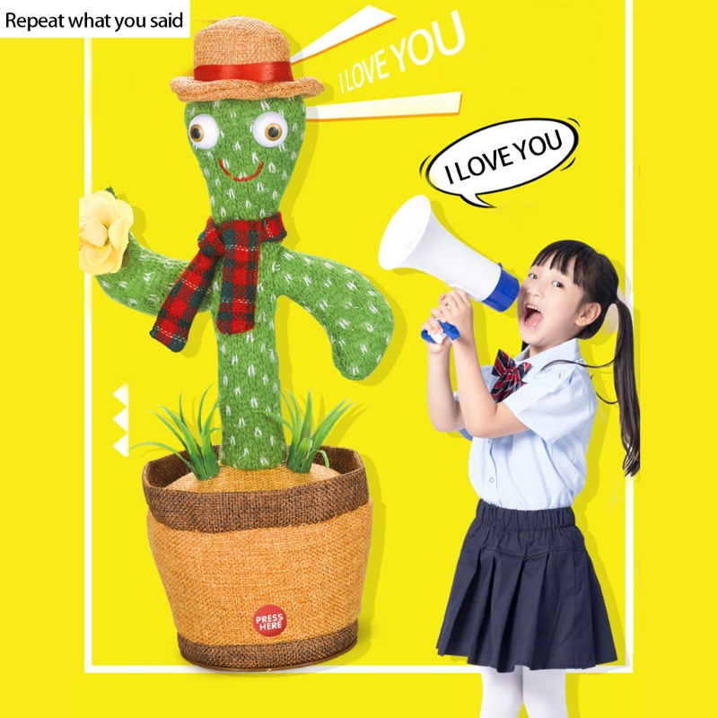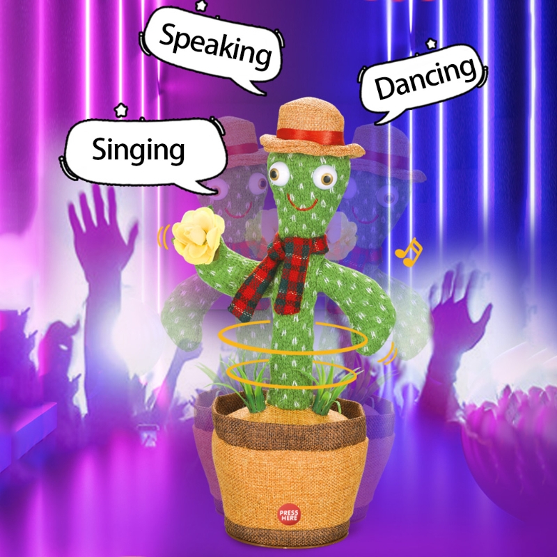 Multi-functional, cactus toy can sing and dance,at the same time swings its body,also repeat your words in a funny way.