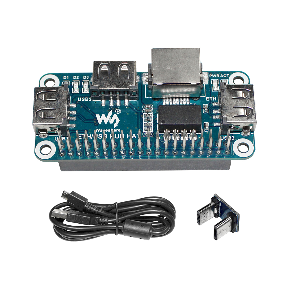Комплектация: (без платы Raspberry Pi.) ETH/usb-хаб шляпа x1 Разъем Micro USB x1 USB кабель x1 Комплект винтов RPi x1