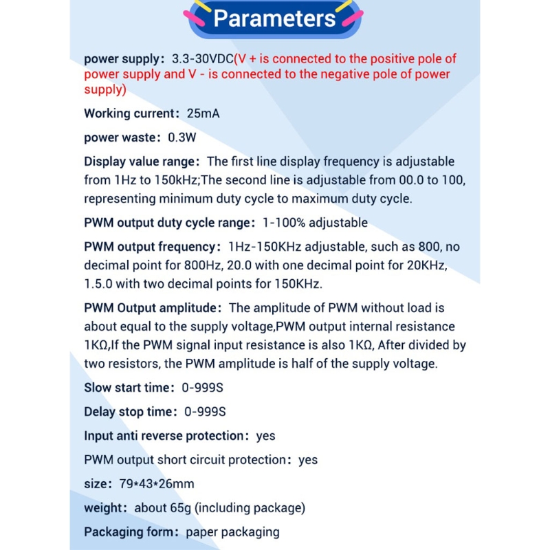 Рабочее напряжение 3,3-30V; Частотный диапазон 1Hz-150 кГц.