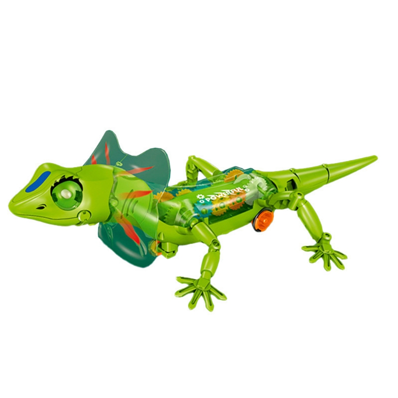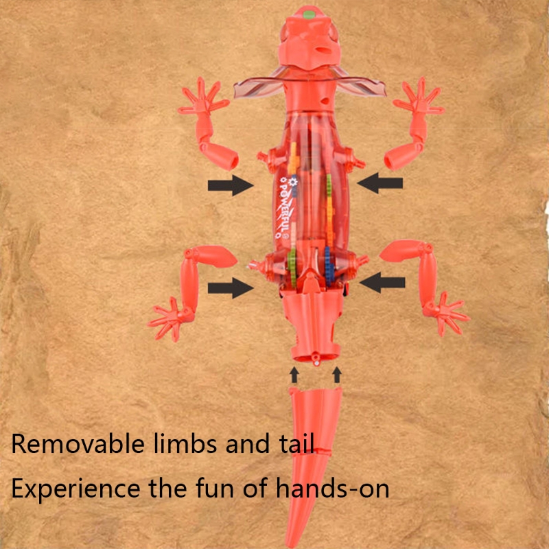 Когда ящерица ходит, ее рот открывается, а хвост качается из стороны в сторону. Вы можете видеть, что внутренняя передача поворачивается.