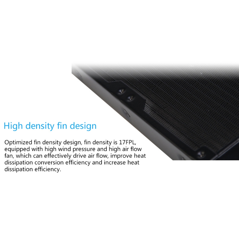 Он изготовлен из чистого алюминиевого материала и имеет u-образную зону рассеивания толщиной 7 мм. S-образные ребра для рассеивания тепла расположены в высокой плотности. Эта конструкция эффективно увеличивает площадь рассеивания тепла и повышает эффективность теплообмена.