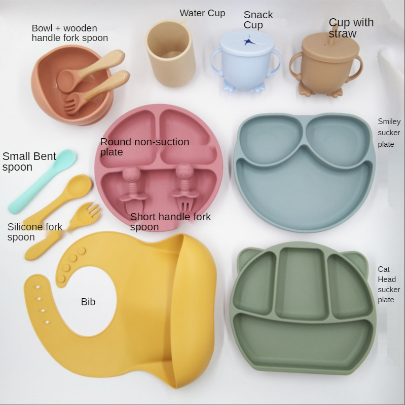 [Наименование]: силиконовый нагрудник для малышей и детей, цельная разделенная Тарелка на присоске, чашка для питья с соломой, миска для кормления, набор вилок и ложек