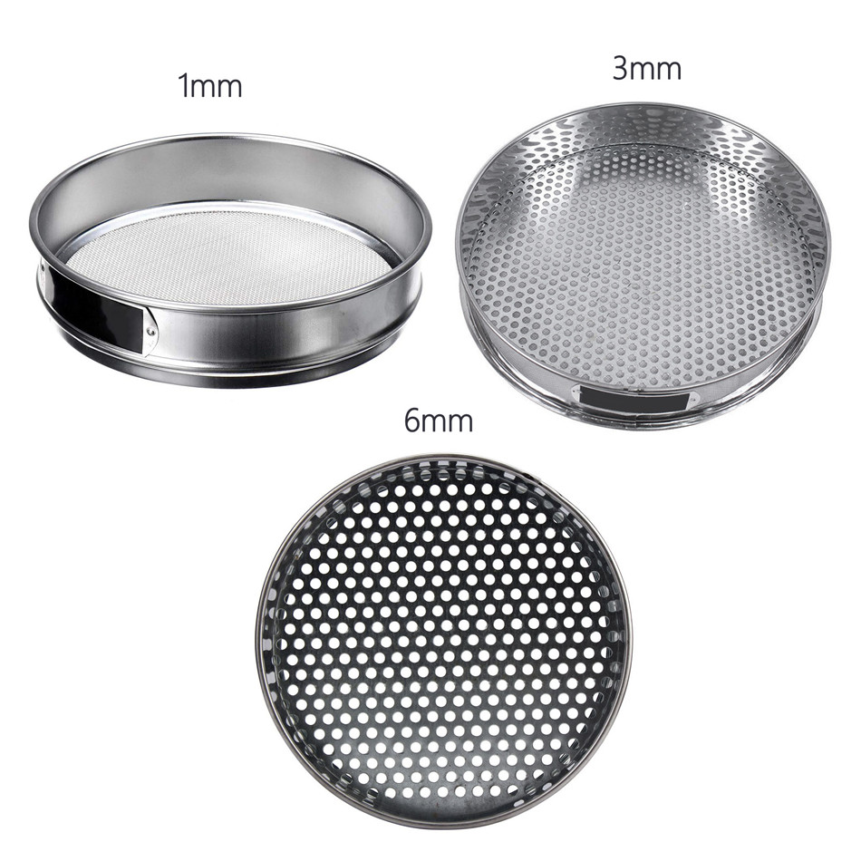 Show more3pcs Garden Home Metal StainlessSteel Meaty Garden Riddle Soil Sieve Mesh 1mm 3mm 6mm