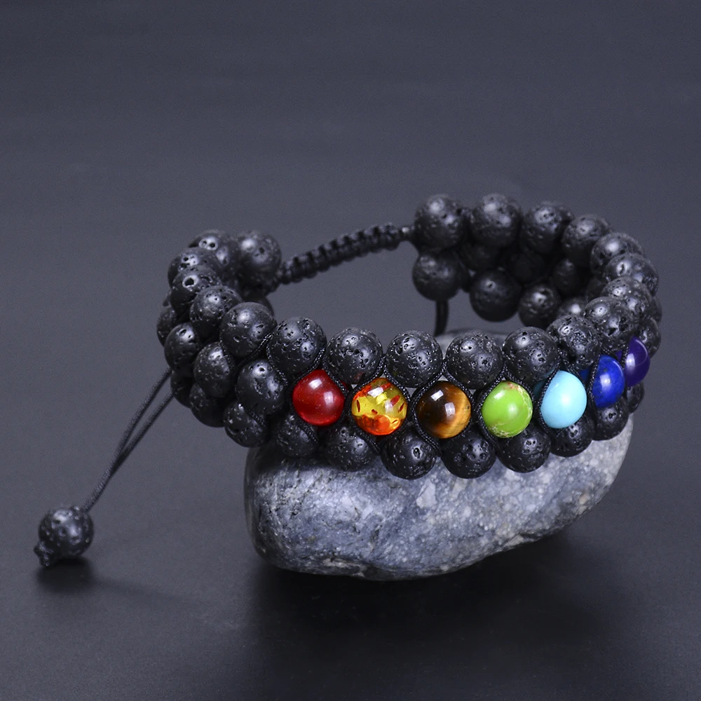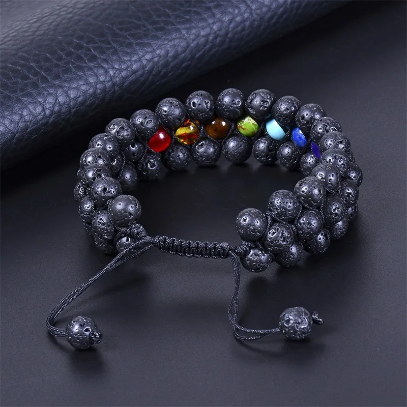 Черные богемные разноцветные агатовые бусины 8 мм чакра рейки Будда Йога браслет