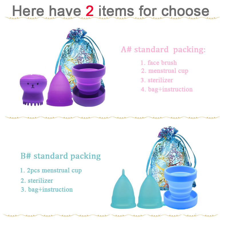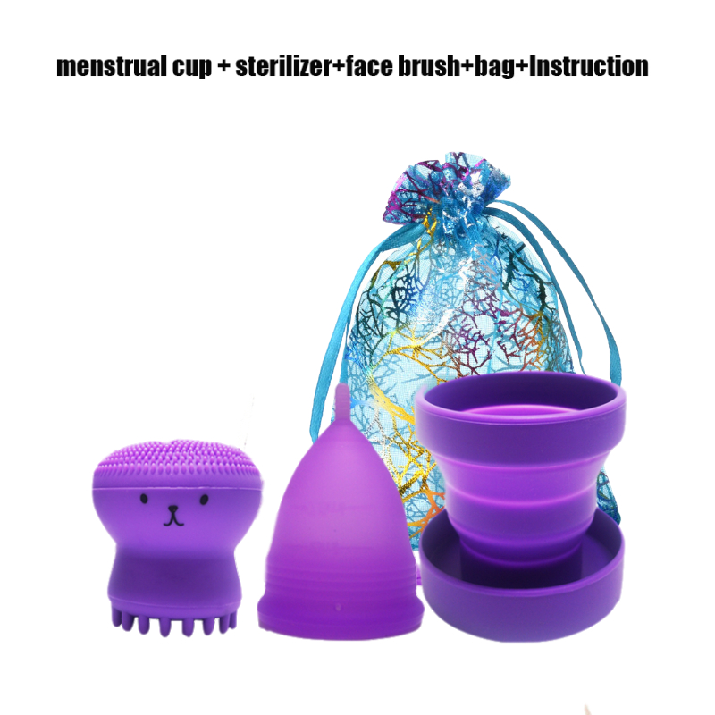 Медицинская силиконовая менструальная чашка Складная силиконовая чашка для чистки менструального периода чашка для женщин Менструальный коллектор и щетка для очистки лица