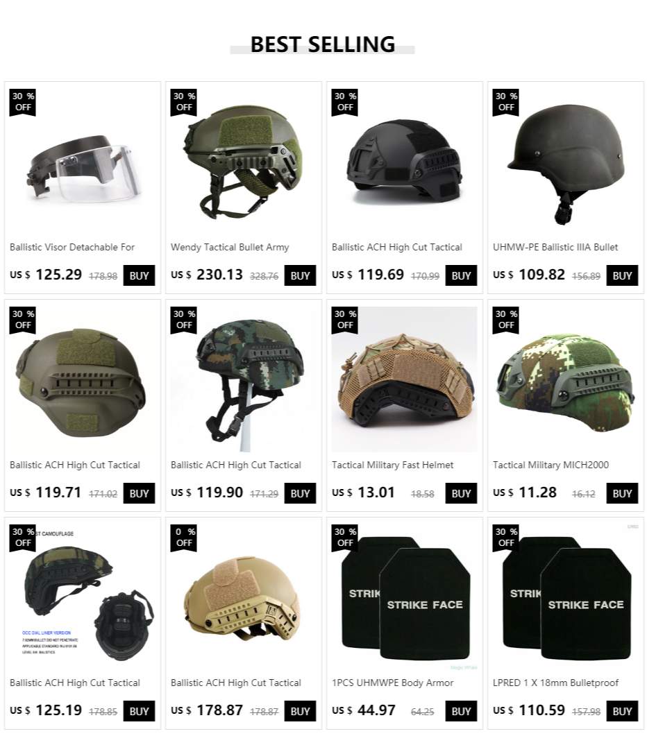 Руководство по эксплуатацииЭтот Пуленепробиваемый Шлем состоит из ремня для подбородка шлема и верхней подвесной системы шлема. Светильник весит и может использоваться с наушниками с эффектом шума. Пуленепробиваемый шлем имеет регулируемую систему внутри, которая удобна и имеет сильную амортизирующую функцию. Внешняя часть шлема оснащена рельсом, который может быть расширен.Описание товараЭто совершенно новый уровень IIIA UHMW-PE баллистический шлем черного цвета.Материал: UHMW-PEРазмер M/L (подходит для головы 53-57 см, 3/4 6 - 3/8 7), размер L/XL (подходит для 58-63 см, 1/2 7 - 7/8 7)Весит около 3.5lbs (1,6 кг).Цвет изделия: черный, отправка, зеленый,Камуфляж(Опционально)Площадь защиты: ≥ 0,12 ㎡ (1.29ft м²)Уровень защиты: шлем NIJ IIIA level, национальный стандартИсполнительный стандарт: национальный стандарт уровня 3Детали упаковкиБаллистический шлем UHMW-PE-1 шт.![]()