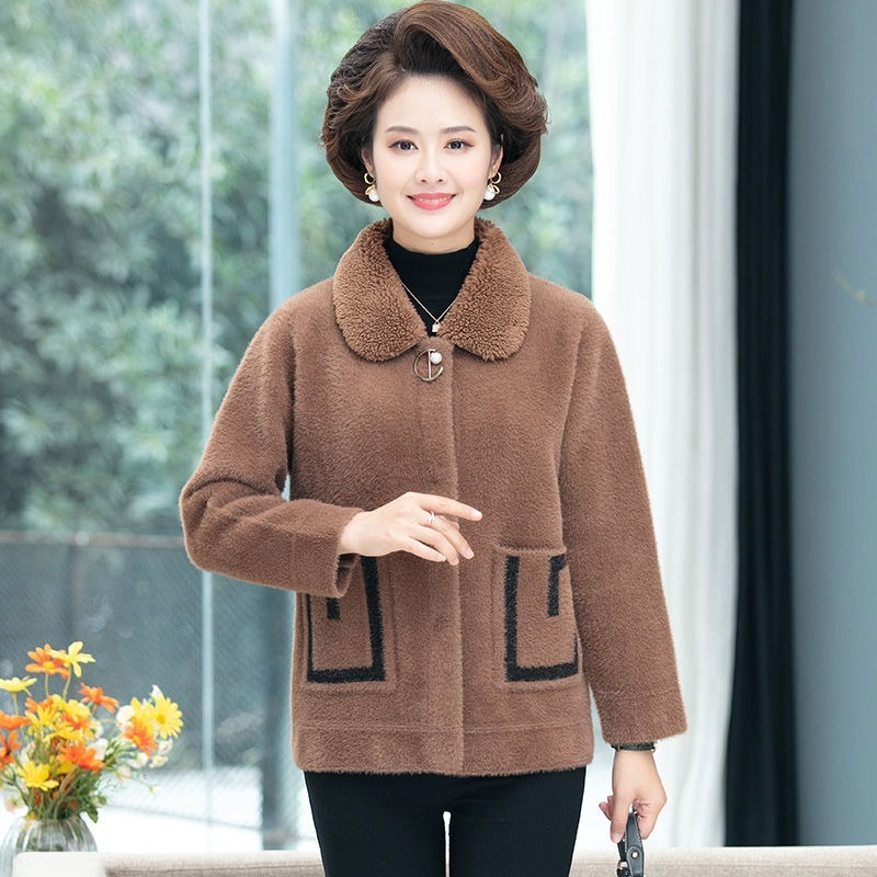 Новое осенне-зимнее женское пальто из искусственного меха норки среднего возраста, женское повседневное Свободное пальто, женский толстый теплый вязаный кардиган X513