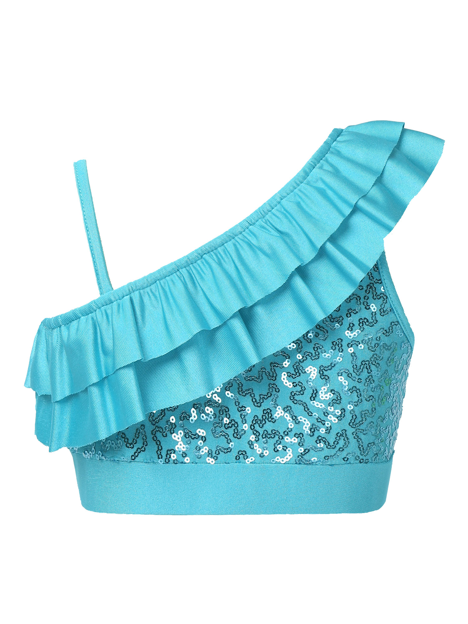 Асимметричный топ без рукавов с оборками и блестками на бретельках для девочек.