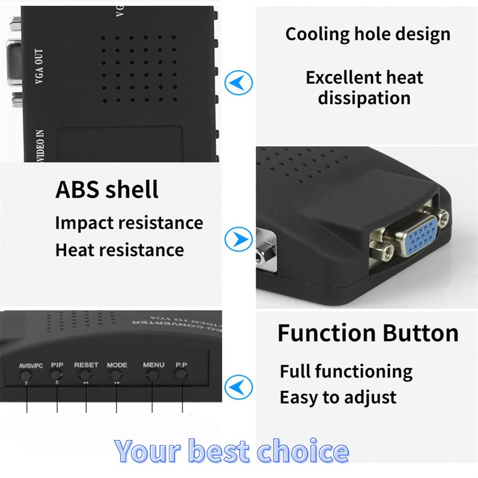 AV в VGA конвертер-это видео конвертер, предназначенный для безопасности, медицинских и домашних пользователей. Он может преобразовывать видеосигналы в VGA сигналы различных разрешений с использованием передовой технологии обработки цифровых изображений, начиная от 800x600 до 1920x1200. Выход разрешения VGA для достижения эффекта отображения "точка-точка" дисплея, чтобы отобразить идеальное изображение. Может быть широко использован в обучении, мониторинге общества, мониторинге шахт и других областях.
