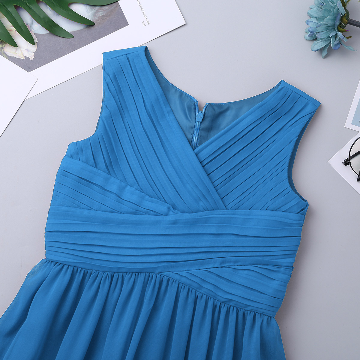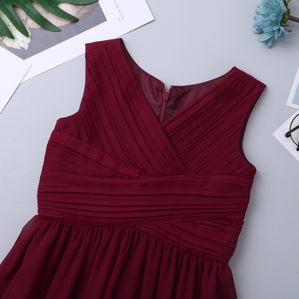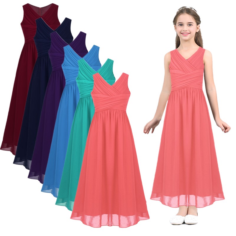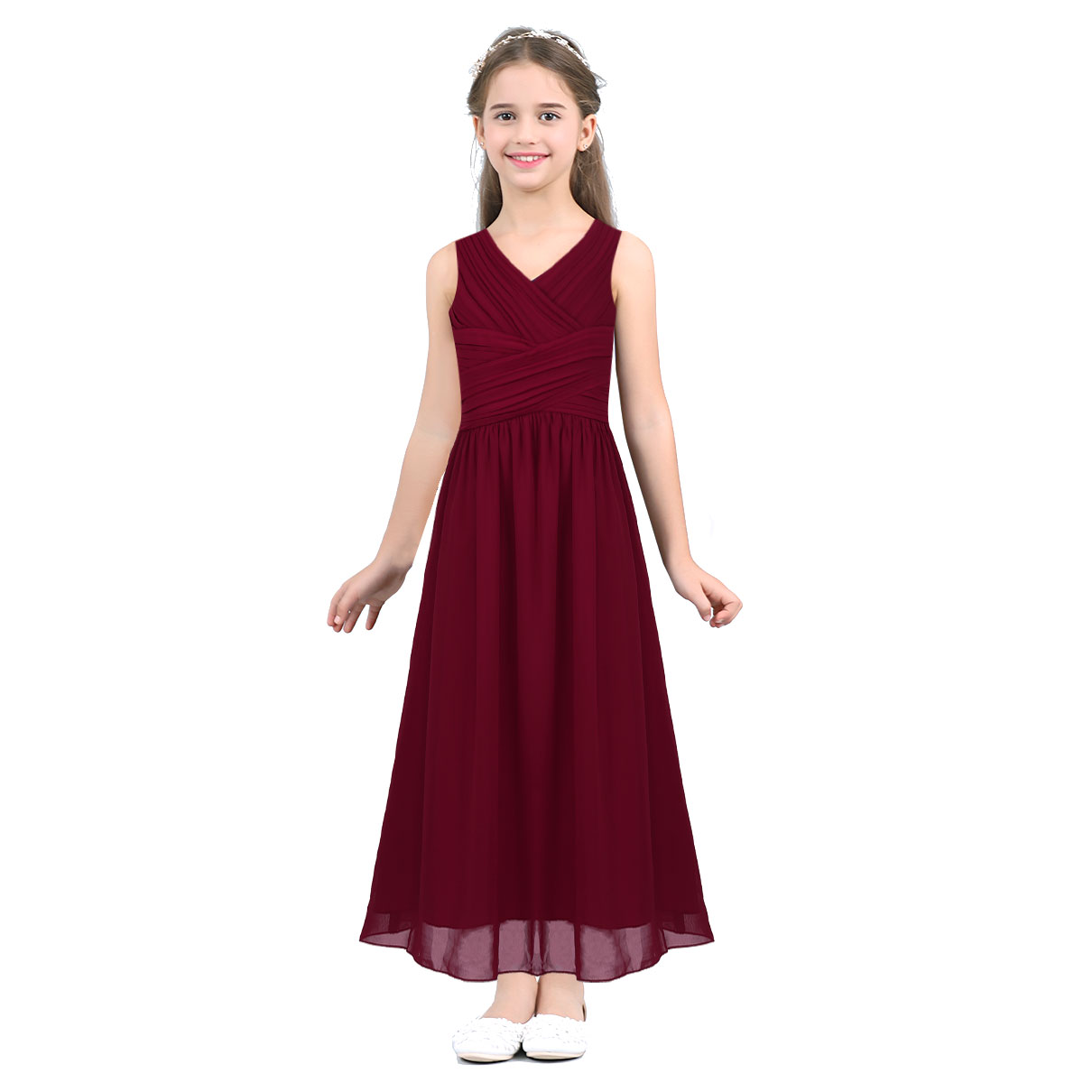 Одежда для девочек Летние шифоновые платья платье без рукавов с v-образным вырезом и цветочным узором для девочек торжественное длинное плиссированное платье Детское Пышное Платье-пачка принцессы на свадьбу, день рождения, для детей 6-16 лет