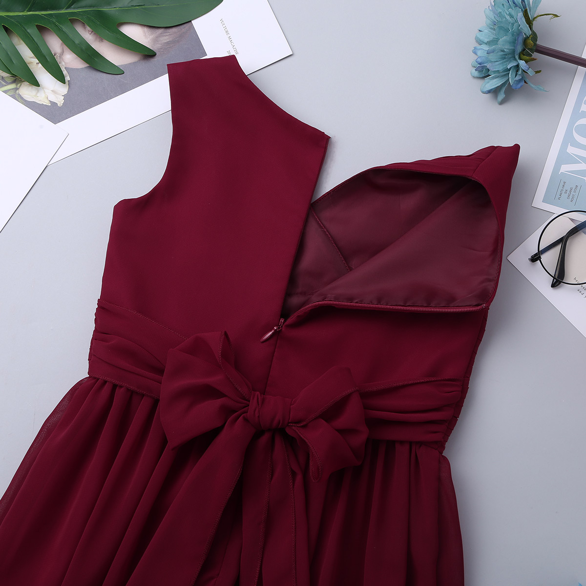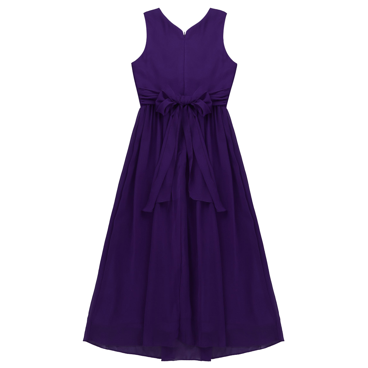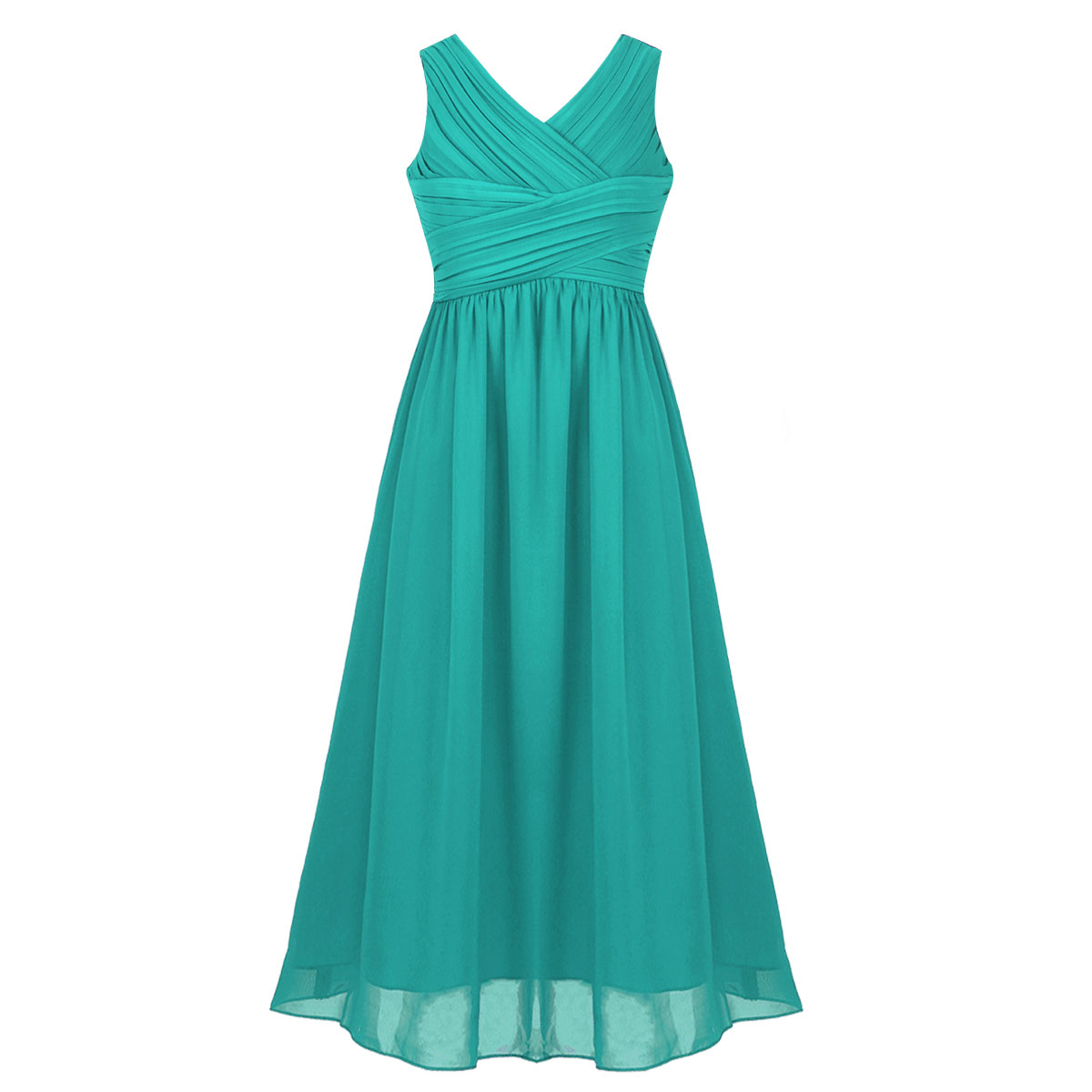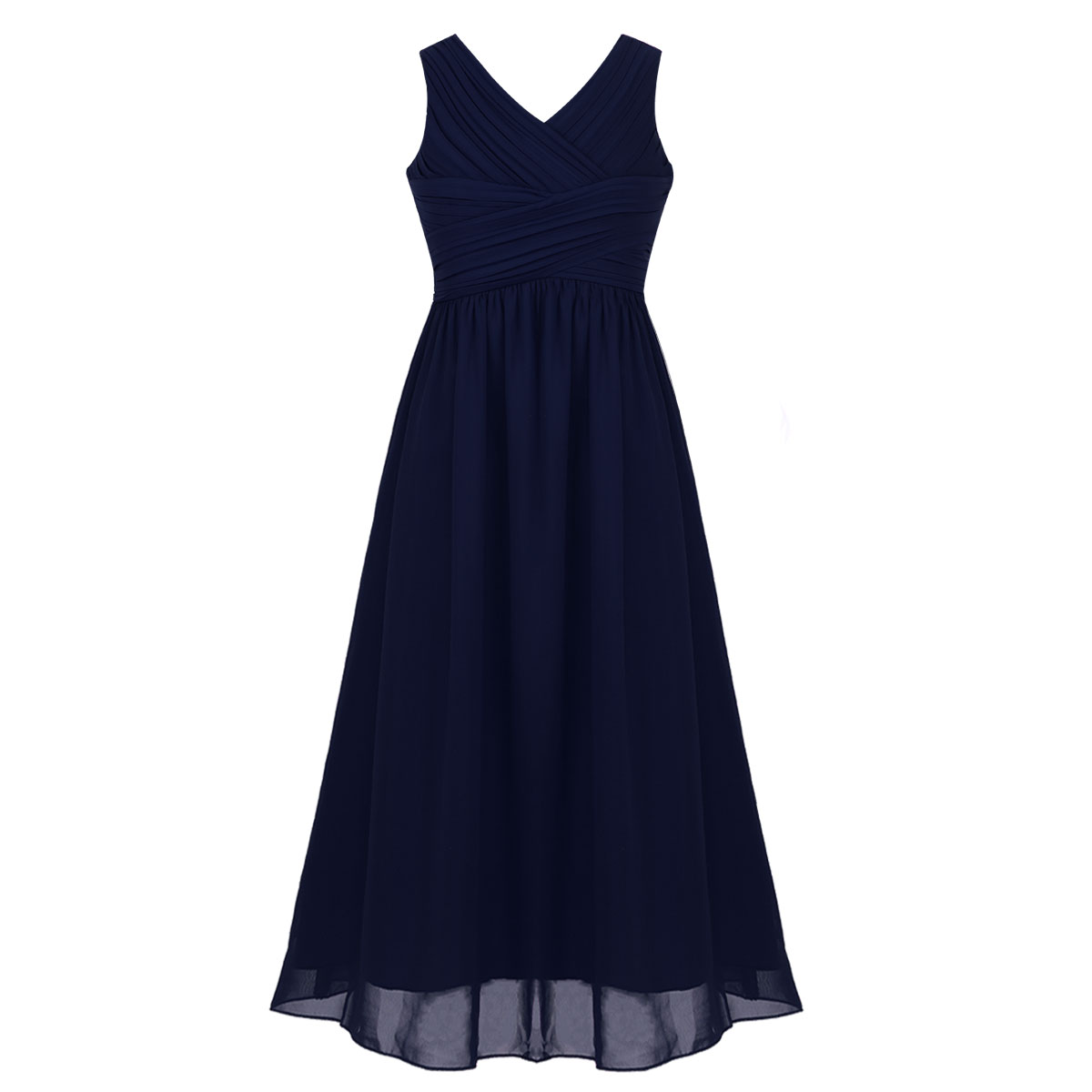 Одежда для девочек Летние шифоновые платья платье без рукавов с v-образным вырезом и цветочным узором для девочек торжественное длинное плиссированное платье Детское Пышное Платье-пачка принцессы на свадьбу, день рождения, для детей 6-16 лет