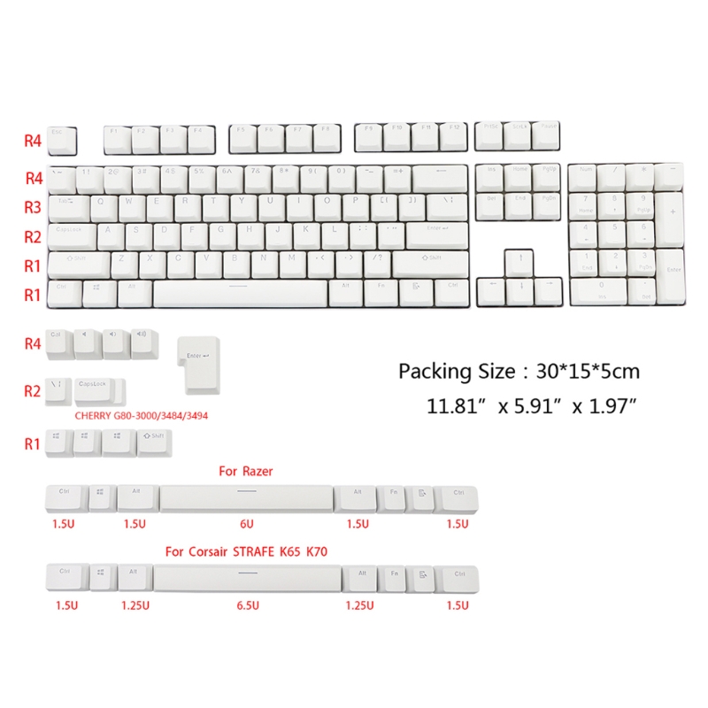 PBT Keycaps с подсветкой для Corsair STRAFE K65 6.5U Space OEM Profile Keycap 131 набор N0PB