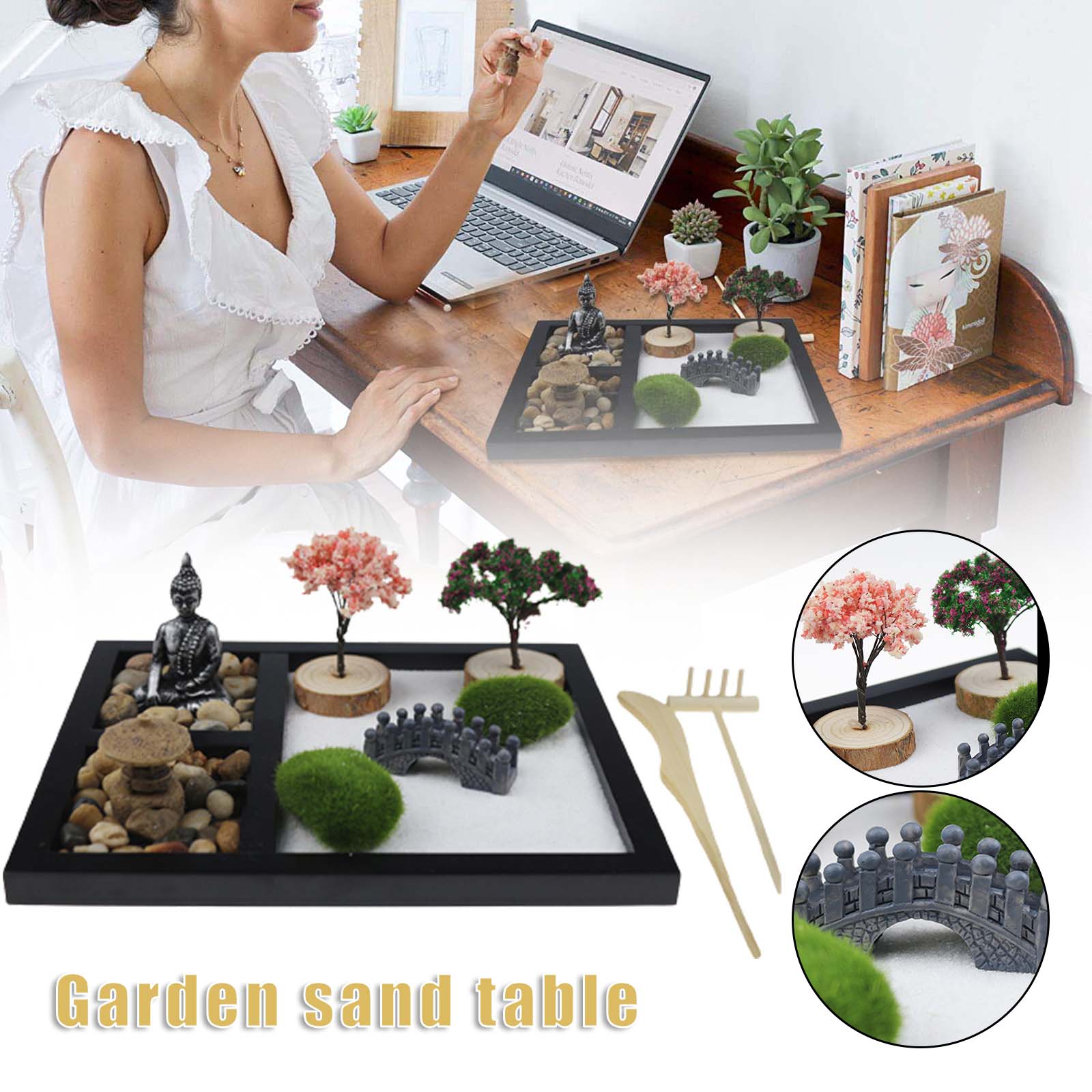 4. Распространение положительных ощущений: прекрасный набор Zen garden, который можно разместить на кофейных столах, кофейных столах и столах. Этот песочный стол Zen имеет сильное настроение, и вы также можете добавить другие украшения в сторону в соответствии с вашими предпочтениями.
