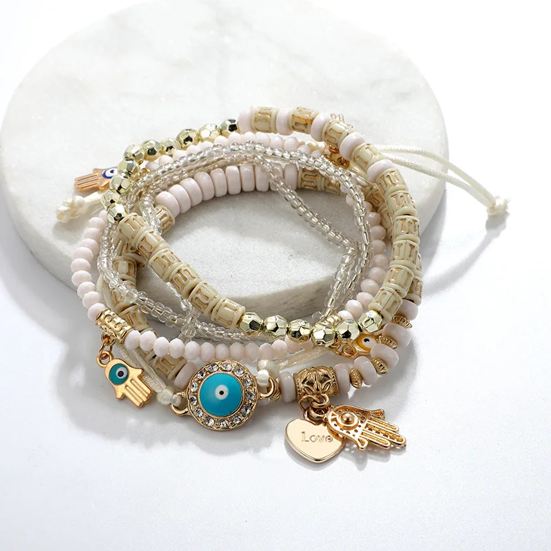 6 шт./партия красочные африканские бусины, Набор браслетов с подвесками для женщин, браслет на удачу Турецкий Дурной глаз, браслеты в стиле бохо для девочек, ювелирные изделия для рук