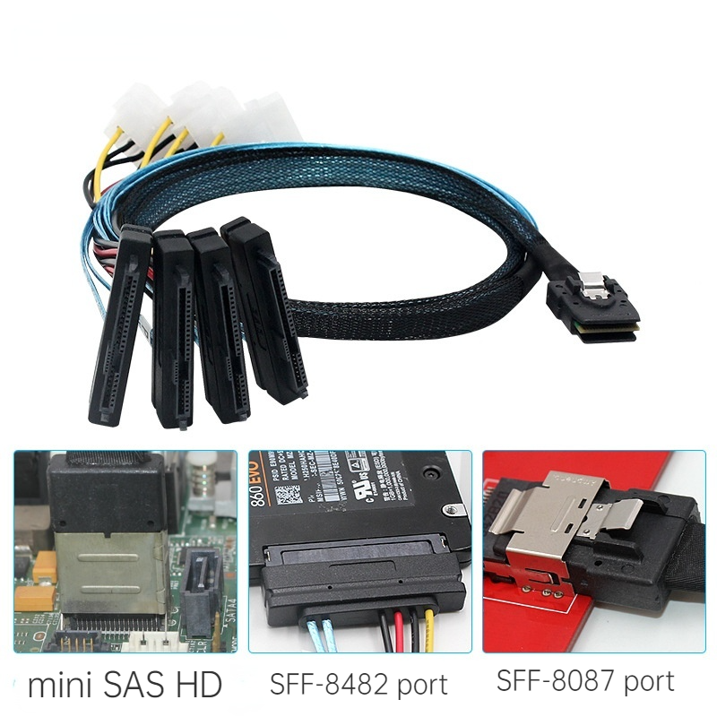 Мини-sas кабель SFF -8087 до 4 SFF -8482 + Большой 4 PIN силовой Жесткий диск SAS кабель для передачи данных