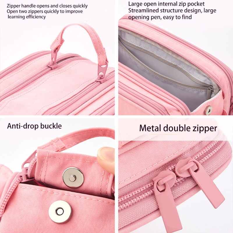 Большая емкость. Большая емкость, место для хранения, сложная внутренняя структура: Дуэль молнии, эластичная петля, анти-капля пряжка, портативная ручка на молнии, несколько отдельных отсеков, легко хранить все ваши канцелярские принадлежности или макияж.