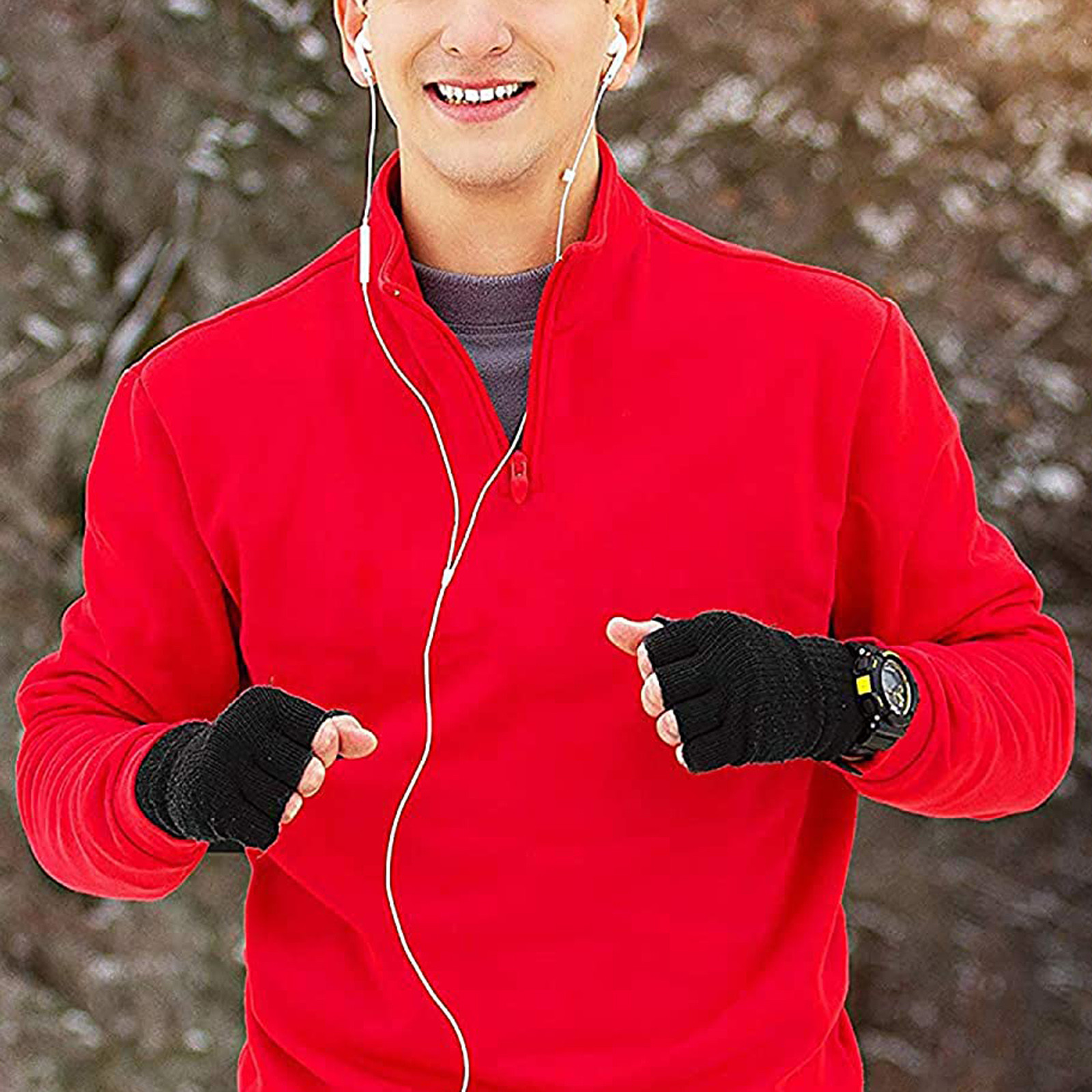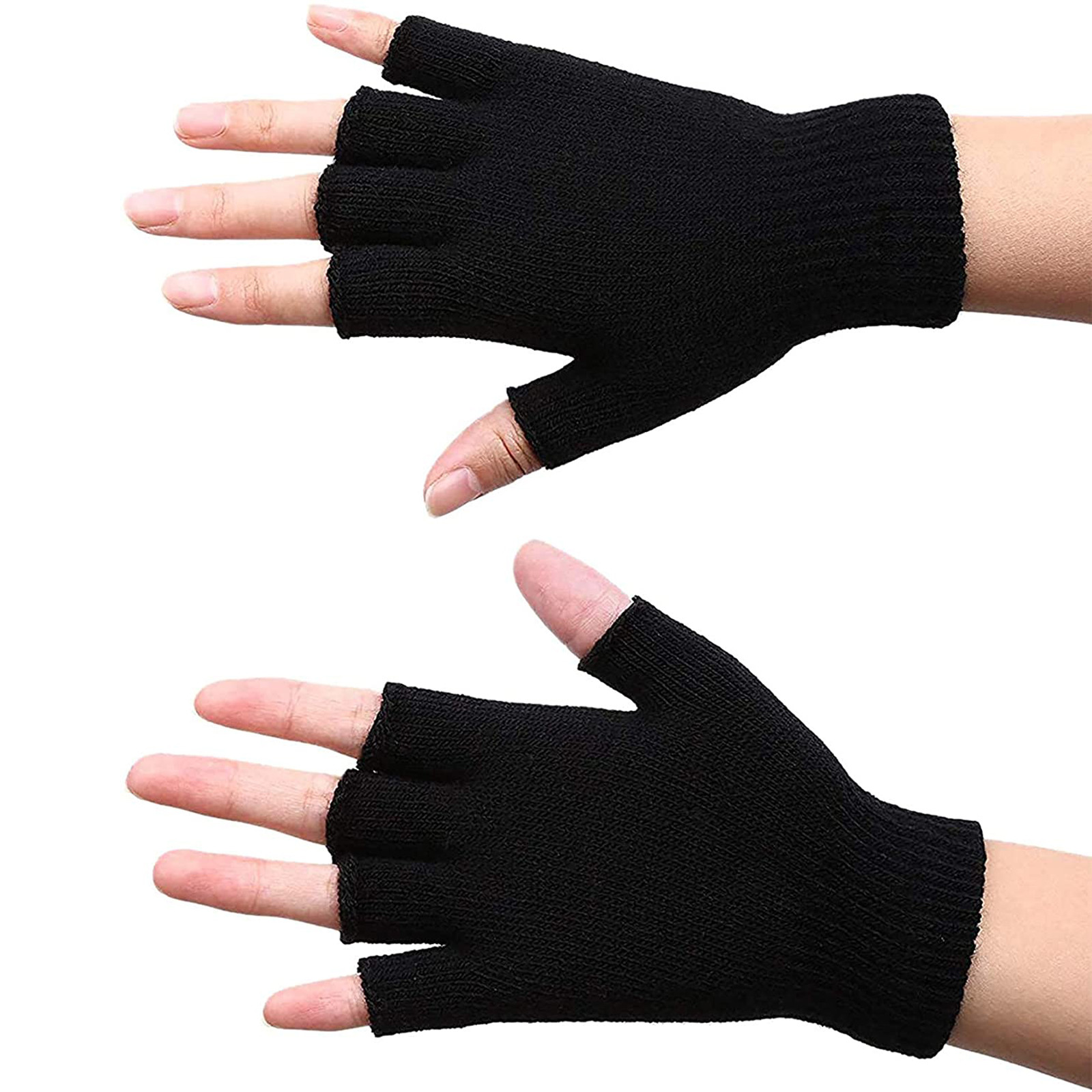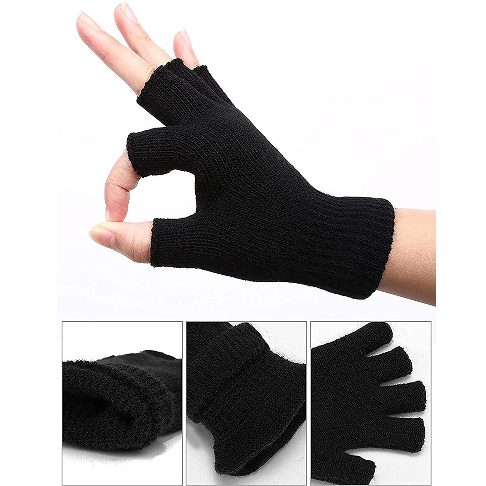 Зимние перчатки унисекс, вязаные перчатки с открытыми пальцами, теплые эластичные перчатки
