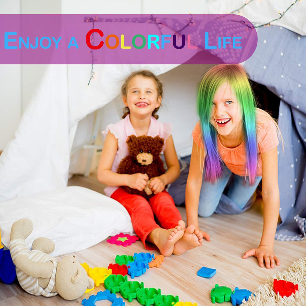 1. Pretty gift for your kids: hair color chalk combs make your kids ( over 7 years old ) more vibrant,more eye-catching in birthday party, stage show,Halloween and cosplay show. Hair color chalk combs are necessary for hair salon games,they make your girls and boys more imaginative and special.