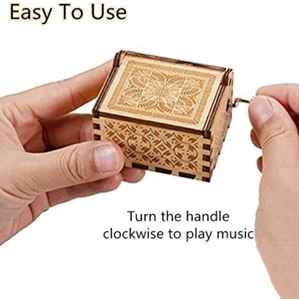 1. Оригинальная Музыкальная шкатулка с рукояткой, просто поверните ручку, чтобы играть свежие и удобные классические песни.