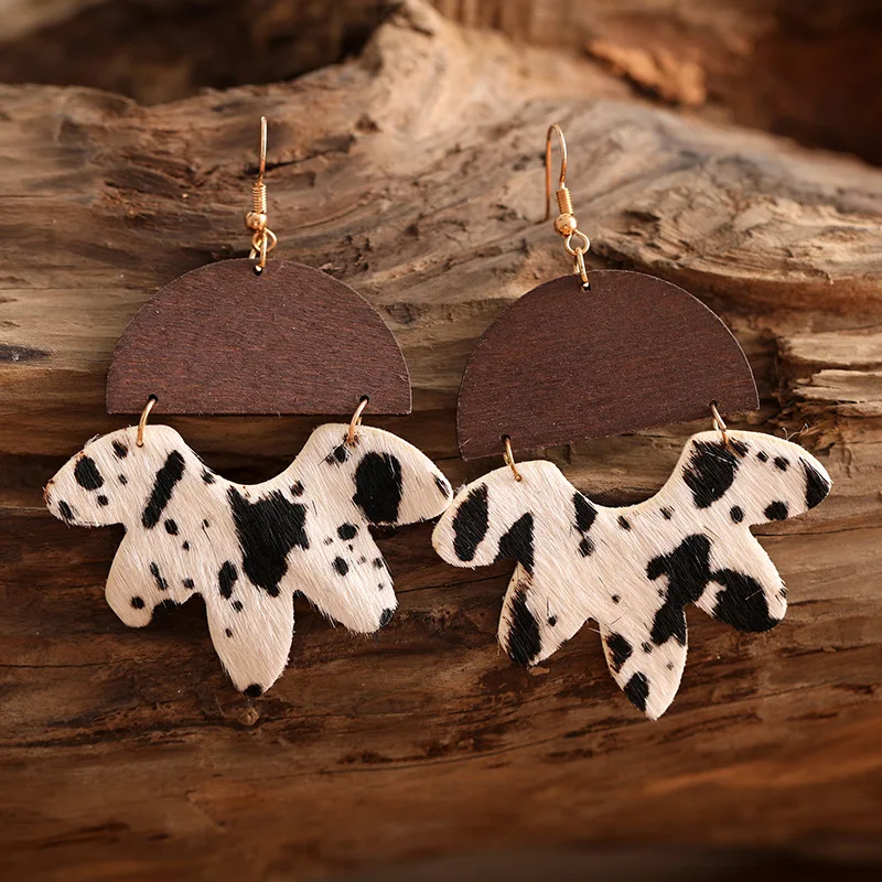 2021 популярные женские золотые серьги в горошек с полукруглым деревянным леопардовым принтом, кожаные серьги для женщин, Деревянные ювелирные изделия, геометрические свисающие серьги
