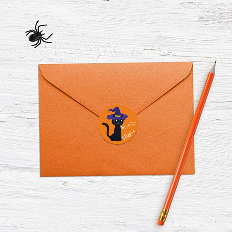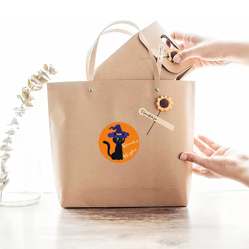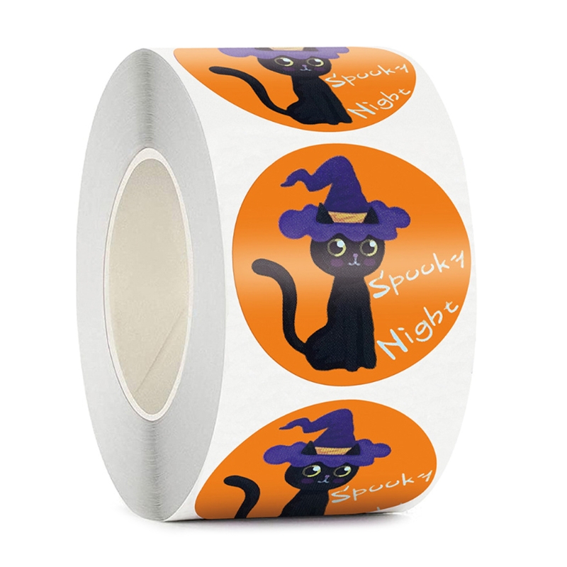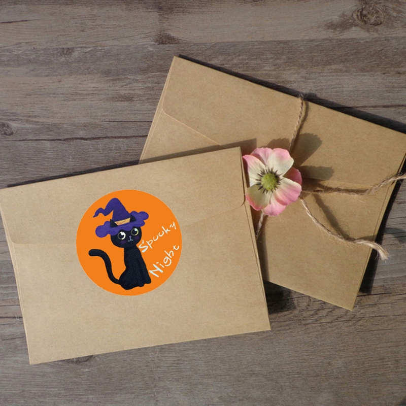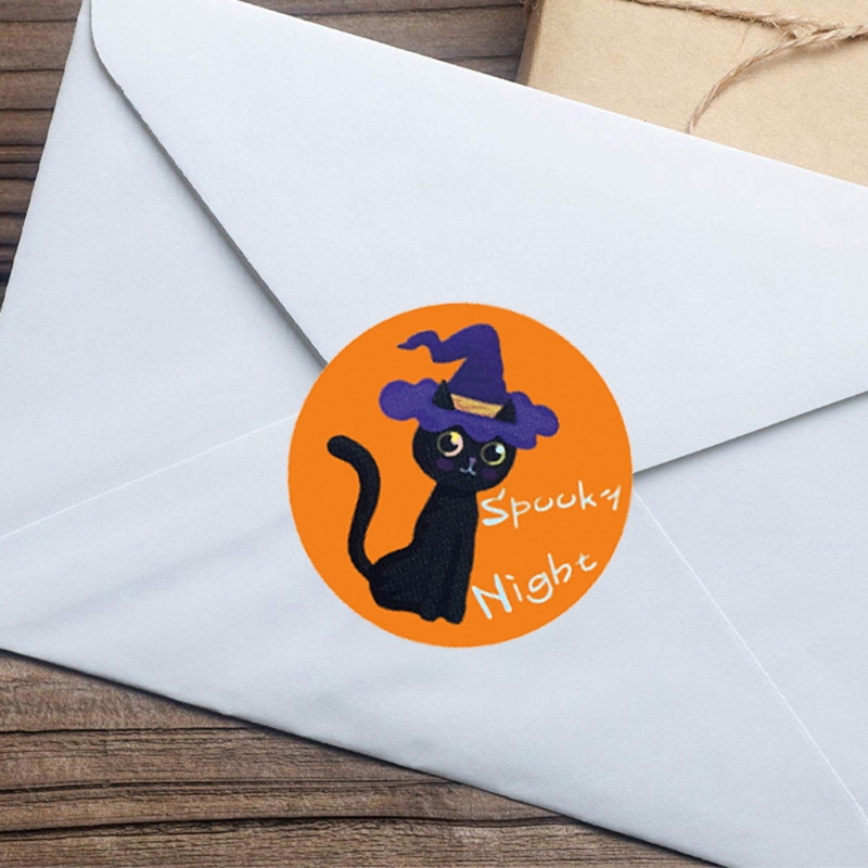 500pcs Halloween Stickers 1.5 Inch Handmade Packaging Sealing Label Cat Sticker QW
