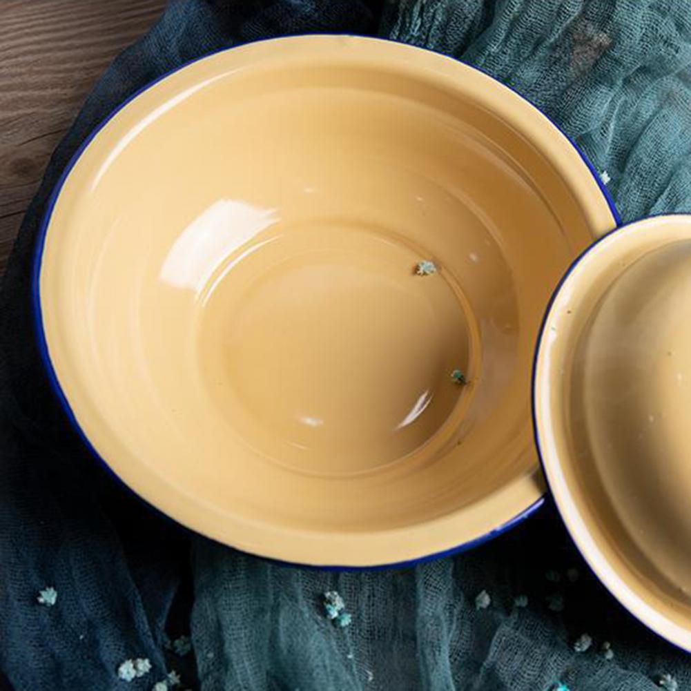 Эта утолщенная эмалированная чаша имеет четыре размера, поэтому вы можете выбрать подходящий размер, чтобы использовать эту чашу в качестве миски для смешивания, миски для фруктов, салатницы, супа или держателя для хранения.