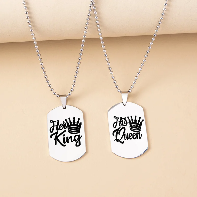 Ожерелье для пары в стиле хип-хоп рок из нержавеющей стали с гравировкой Королевская корона s-подарок для подруги-парня