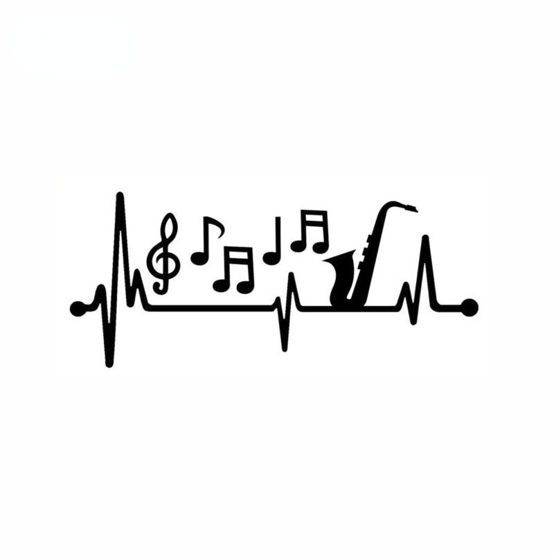 1x8 "* 3,5" саксофон музыкальные ноты сердцебиение Lifeline наклейка на окно автомобиля