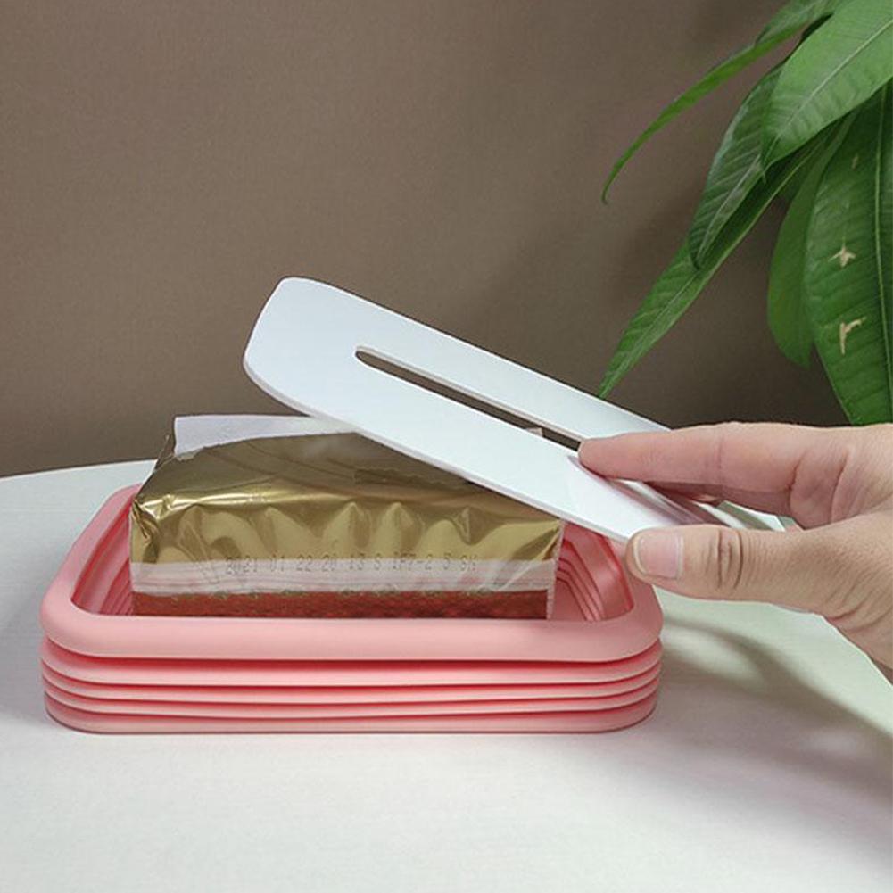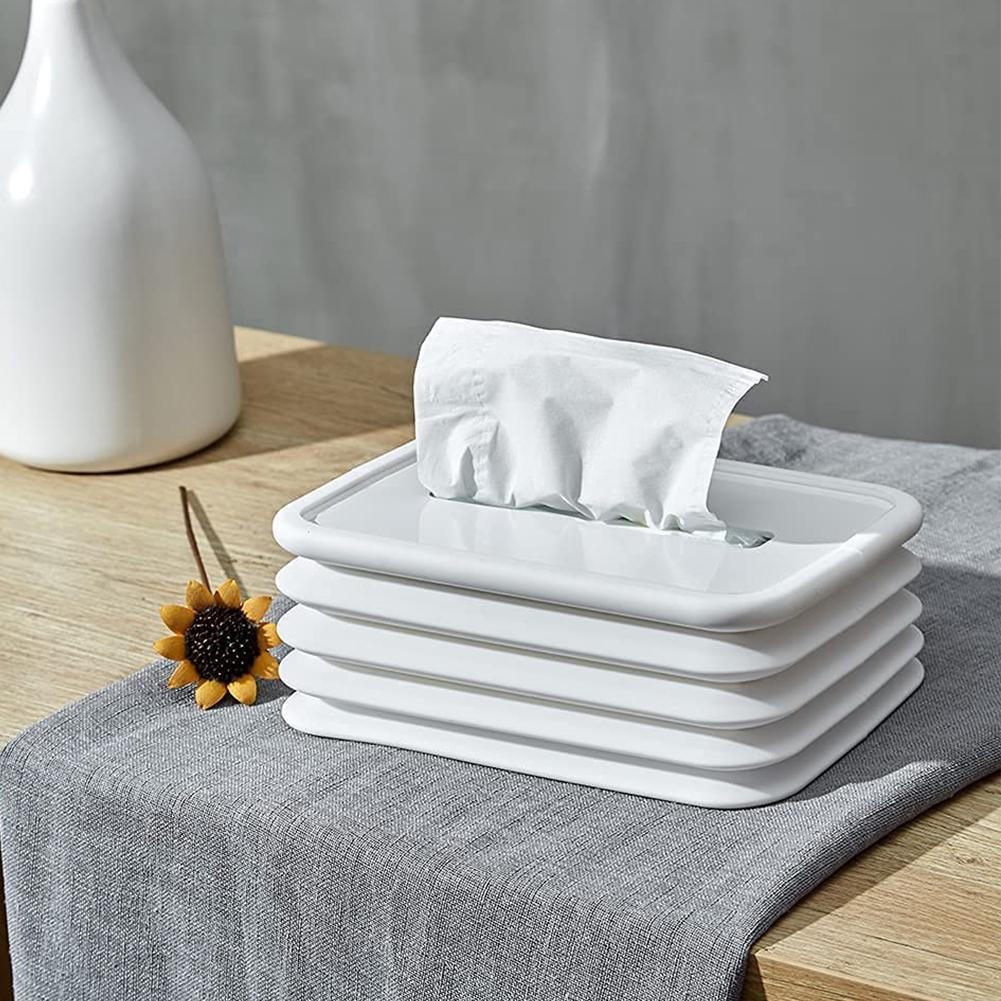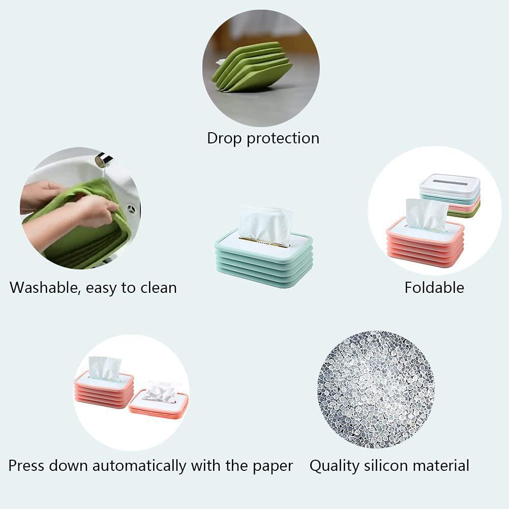 Крышка коробки для салфеток изготовлена из силикона, а верх-из АБС-пластика. Прочный и водонепроницаемый, легко носить с собой и нелегко сломать. Не легко пачкаться, но легко мыть и чистить, что делает его прочным и практичным.