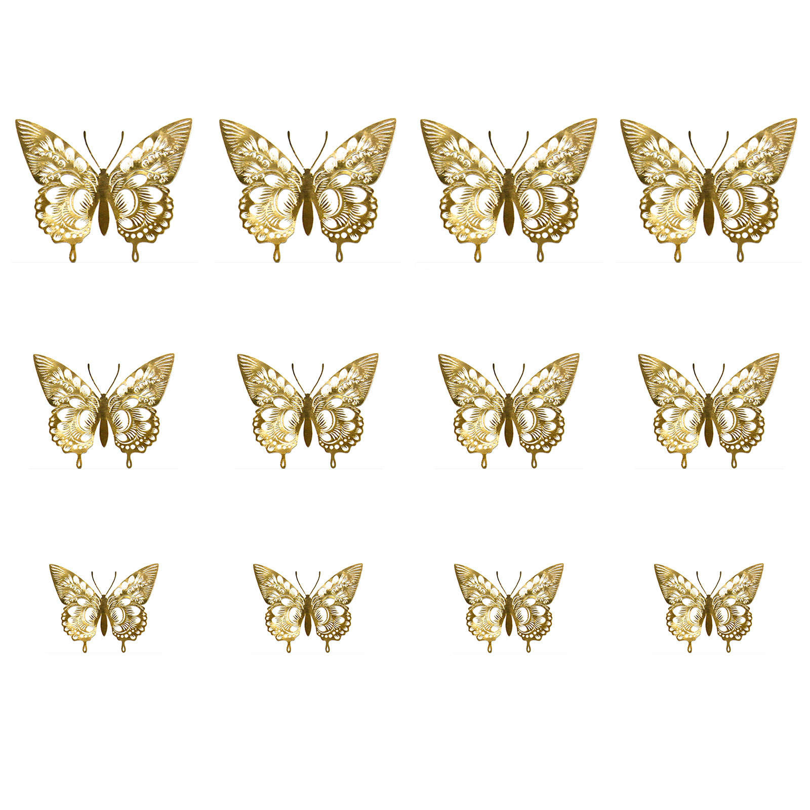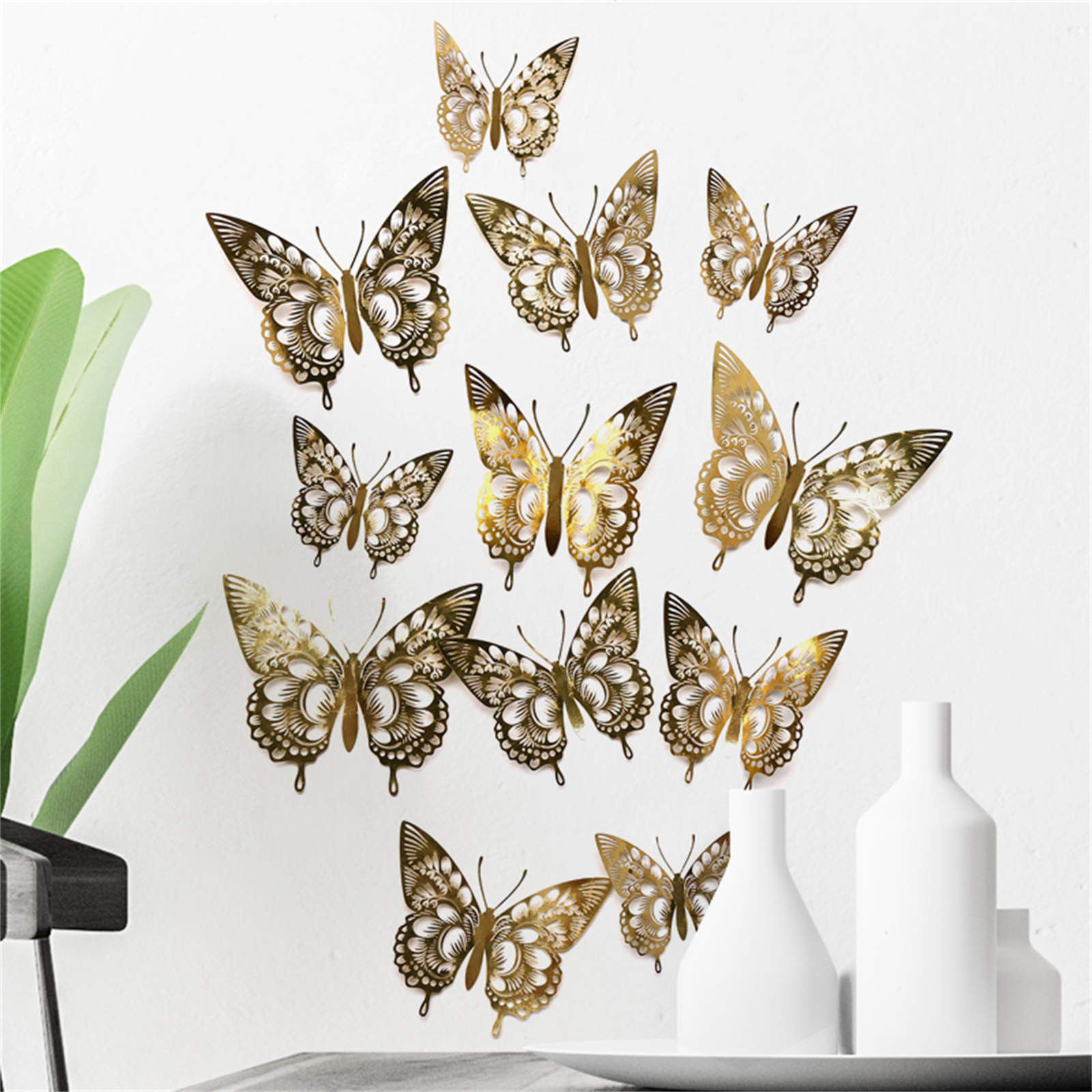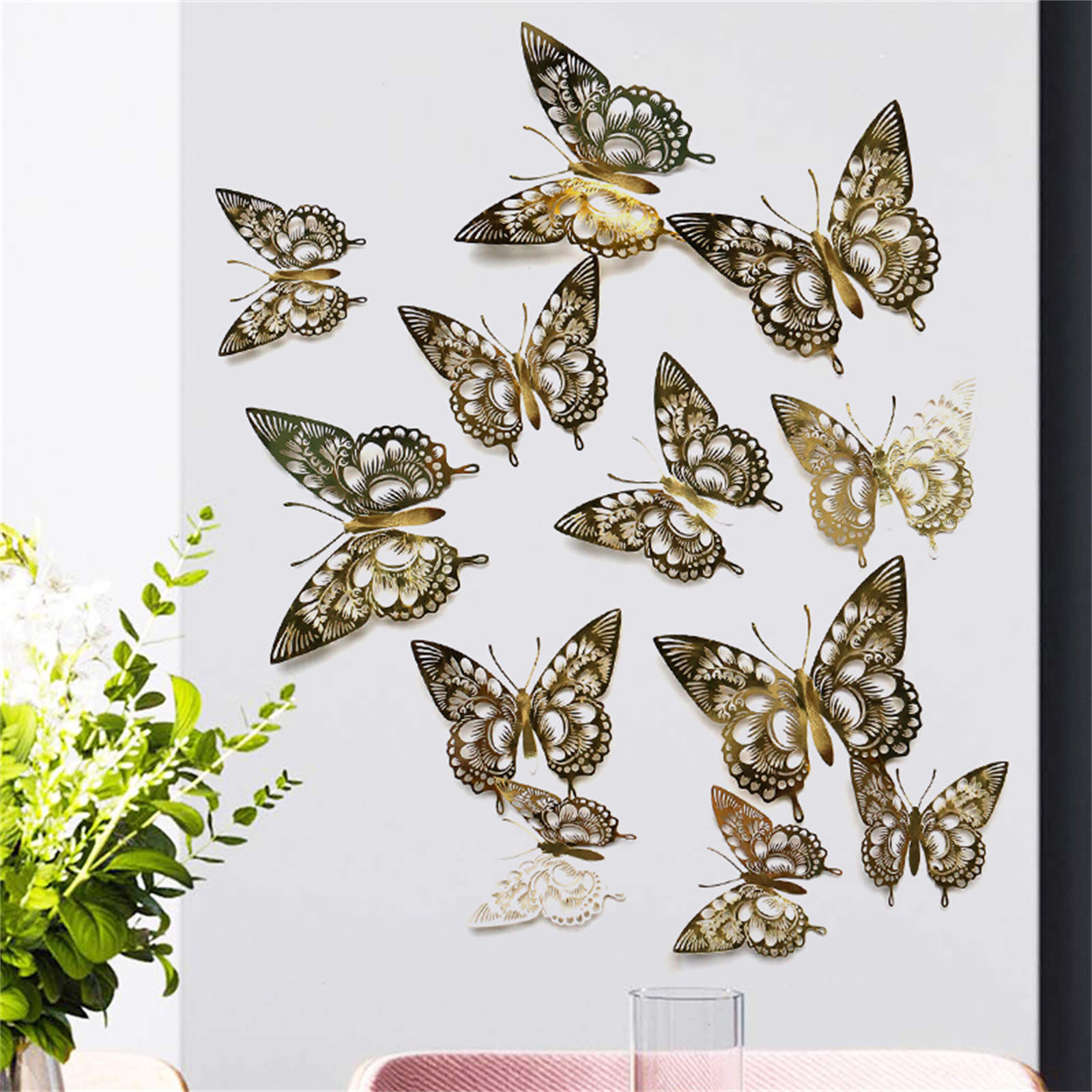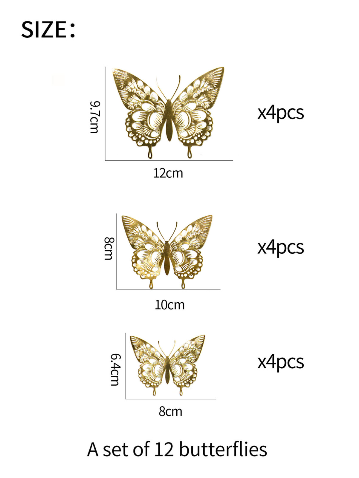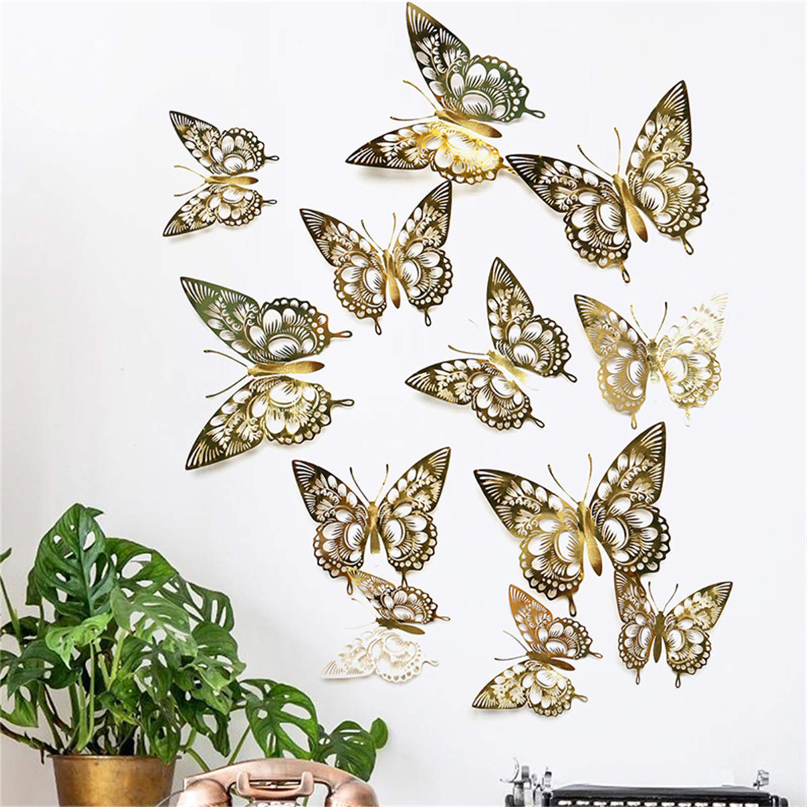 12 шт., 3D декор на стену с полой бабочкой, 3 размера, декор в виде бабочки, изящный дизайн, украшения для торта для вечеринки для девочек, детская спальня, ванная комната, гостиная, день рожденияОписание: