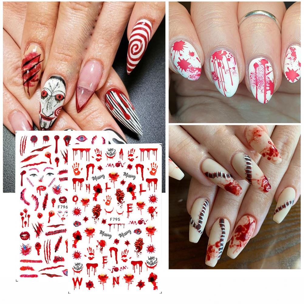 Для использования этого окровавленного стиля наклейки для ногтей, что ваши ногти будут ужасными и уникальными с яркой поверхностью, которая осветит его цвета и сделает его насыщенным, это также может улучшить окружающую среду Хэллоуина.