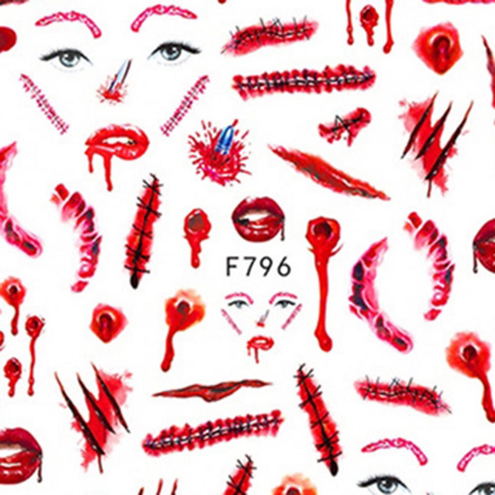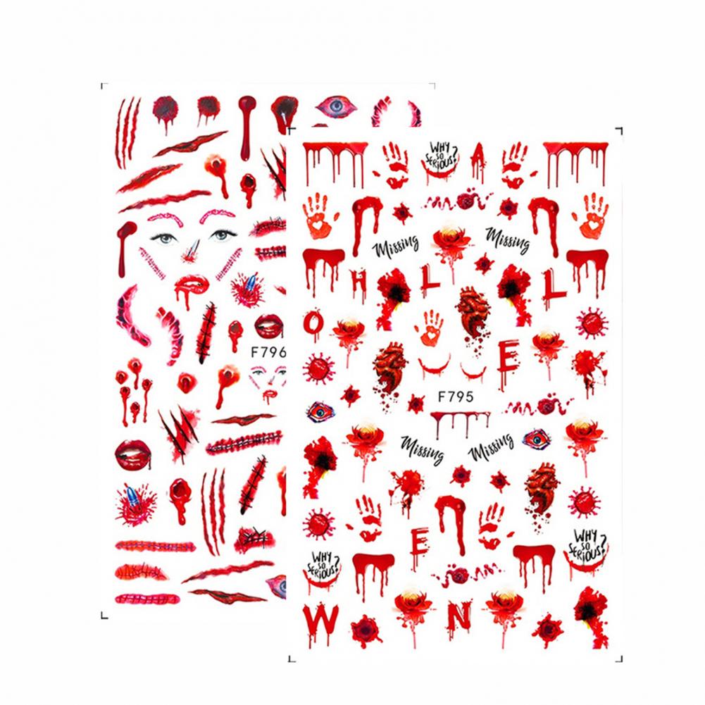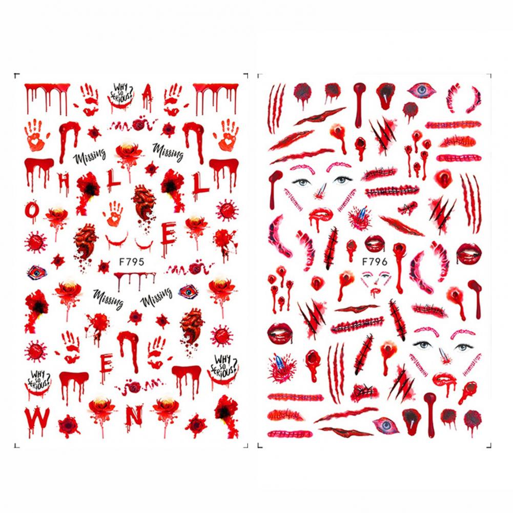 2 шт./компл., страшная наклейка для ногтей, рисунок на Хэллоуин, красные глаза, уникальные руки, шрамы, шрамы, наклейки для женщин