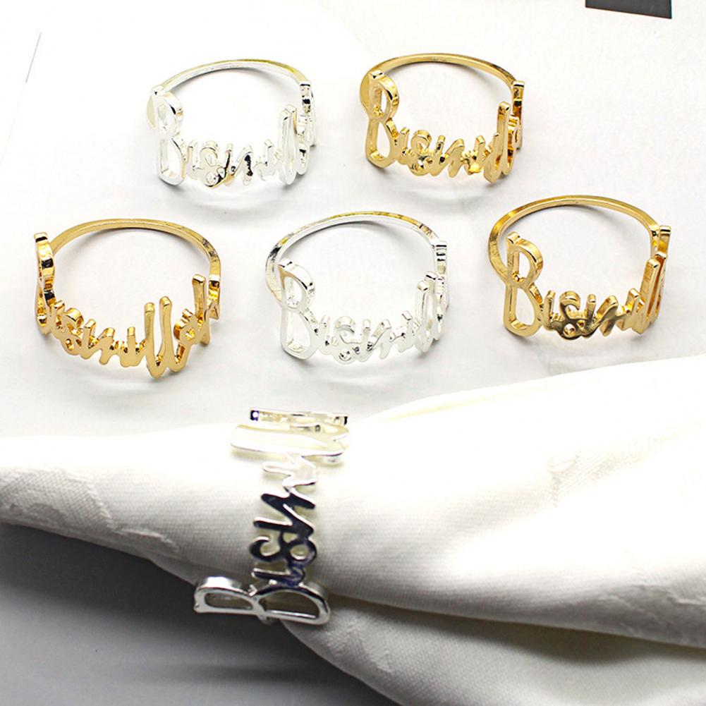 6 шт./компл., модное кольцо для салфеток, изысканное украшение стола, золотой сплав, серебряная буква, металлическая для салфеток, Пряжка для ресторана, кафе, Декор