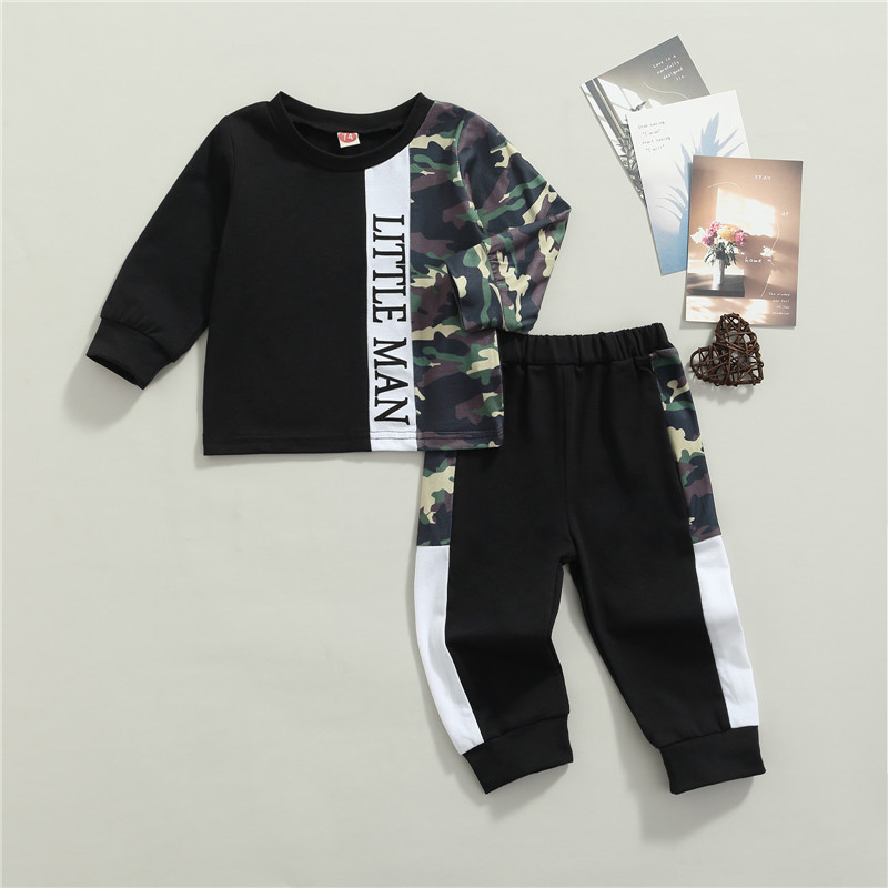 Сочетание детской одежды с длинными рукавами и брюк с принтом с надписью «Little Man».