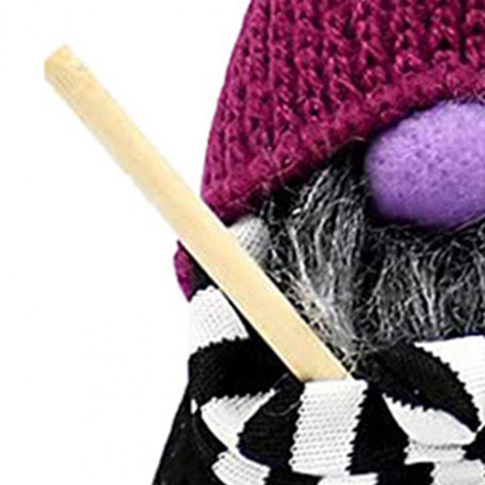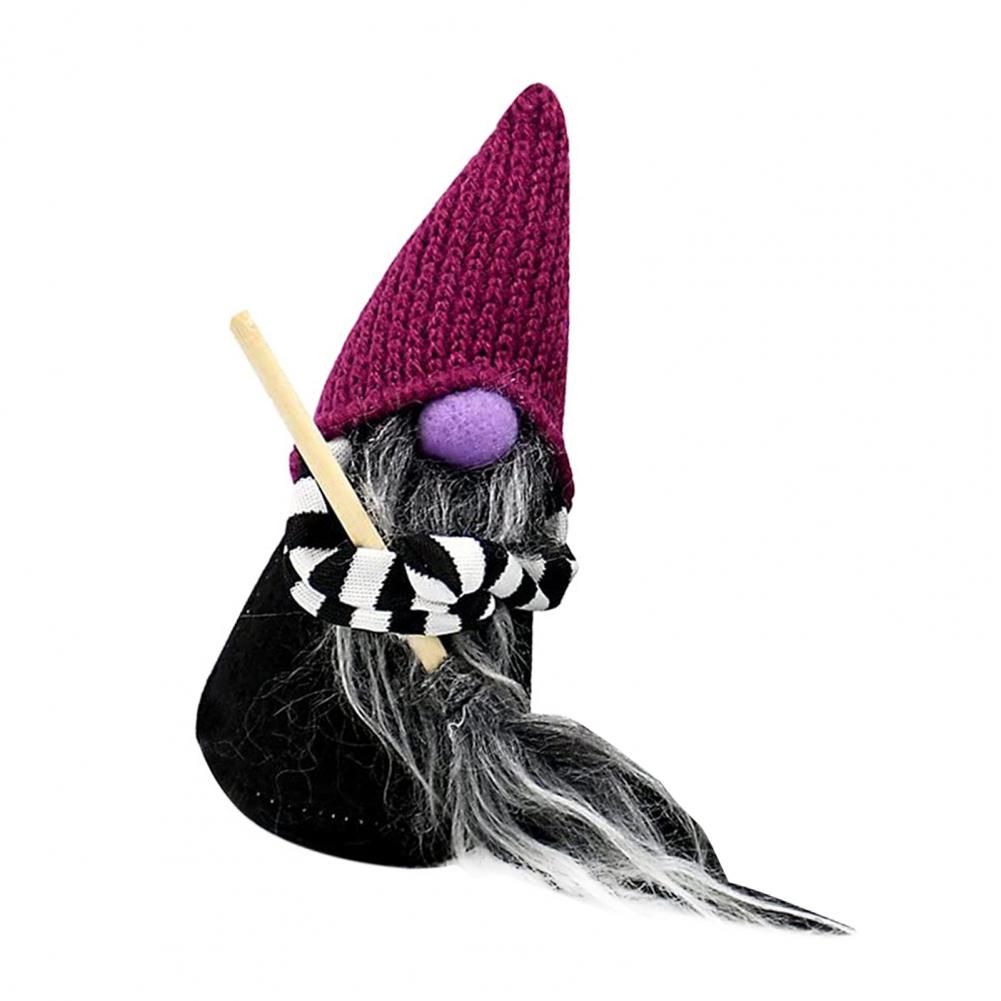 Миниатюрная кукла с плюшевым носом и реалистичной белой бородой держит метлу в руке или декоративный знак, который очень милый и привлекательный для украшения вашей комнаты.