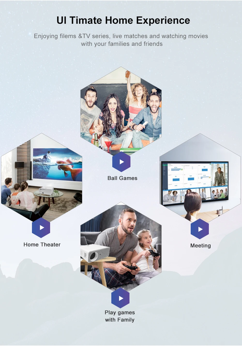 Легко делитесь изображением на телефоне с проектором, наслаждайтесь большим экраном с семьей.