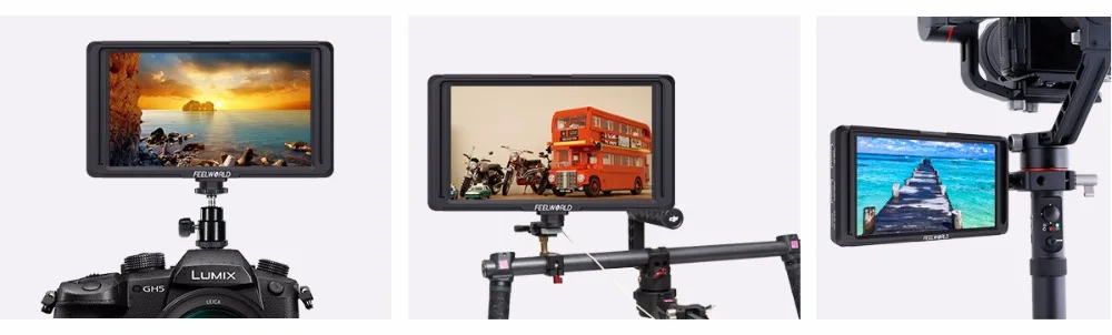 FEELWORLD F5 является очень компактный 5-дюймовый монитор 16:9 Соотношение сторон. Панель Full HD 1920x1080 на F5 удивительно чистая, упаковка 440 пикселей на дюйм. ЖК-дисплей с высоким разрешением показывает яркие и четкие изображения, что делает его идеальным монитором для выдающегося пользователя DSLR. Он также оснащен подсветкой 450cd/m2 и высоким коэффициентом контрастности 1000:1, что облегчает изображение на экране, чтобы быть более ярким, более точным отображением того, что датчик камеры видел.