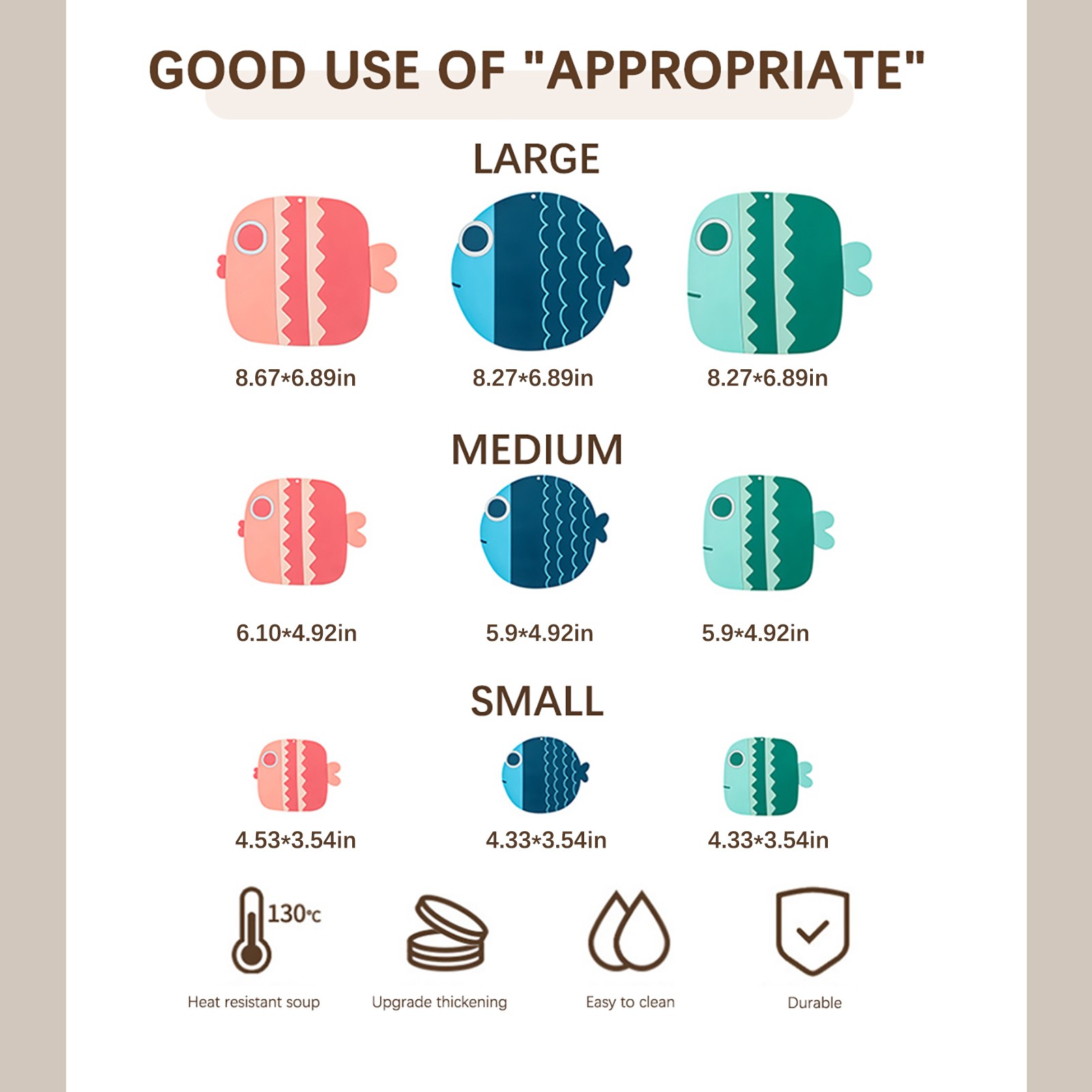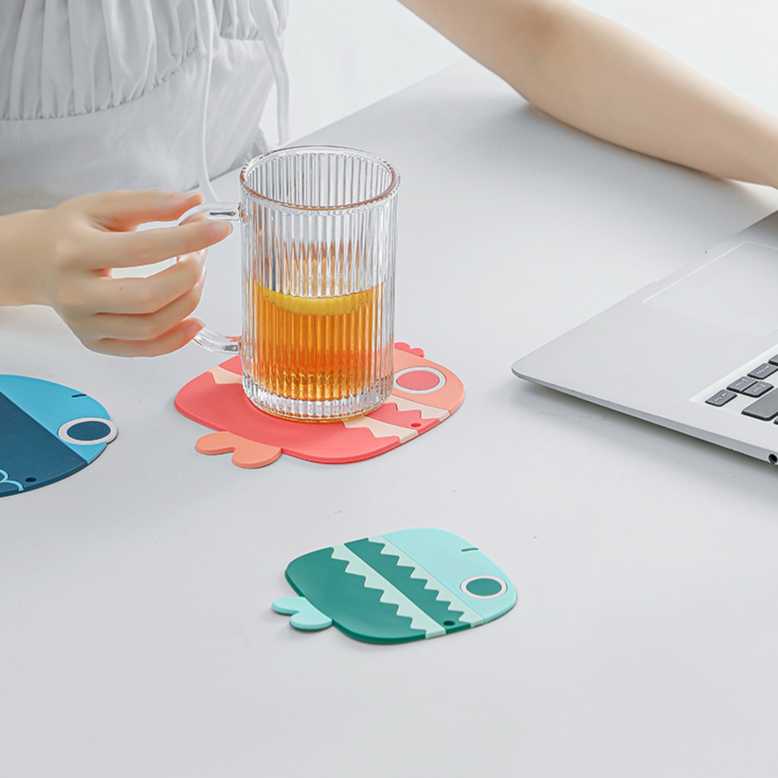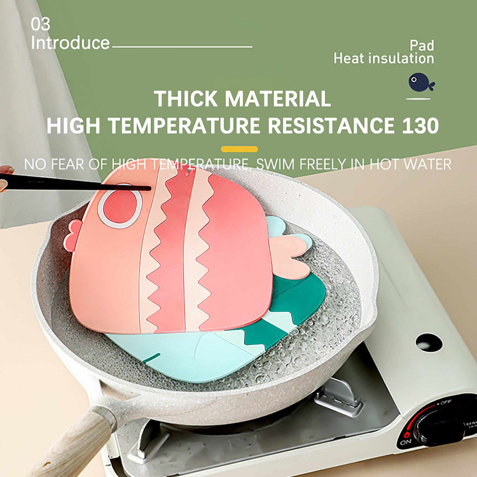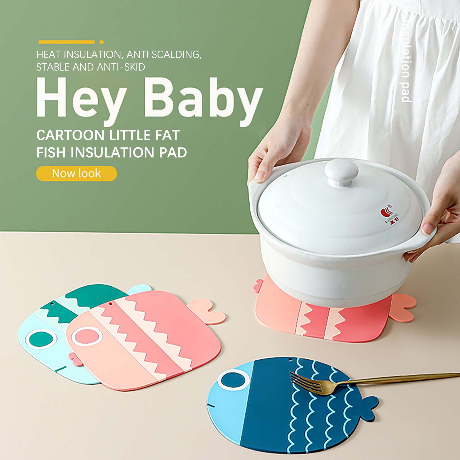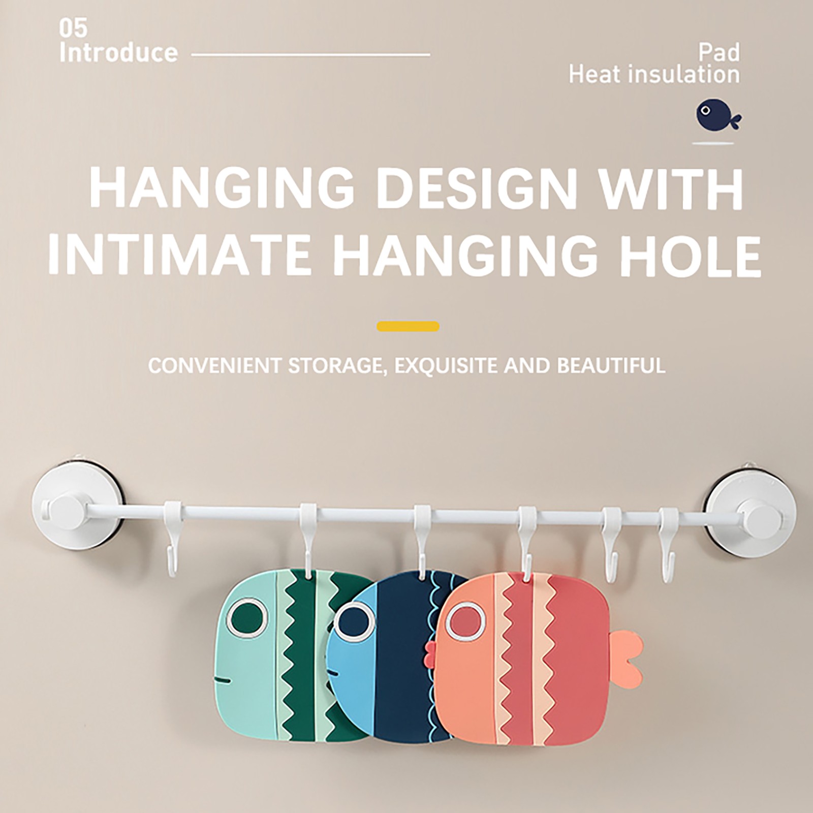 Три милые формы в виде рыбы с розовым, синим и зеленым дизайном могут хорошо украсить вашу кухню и обеденный стол. Когда он не используется, его можно повесить везде, где вам нравится.