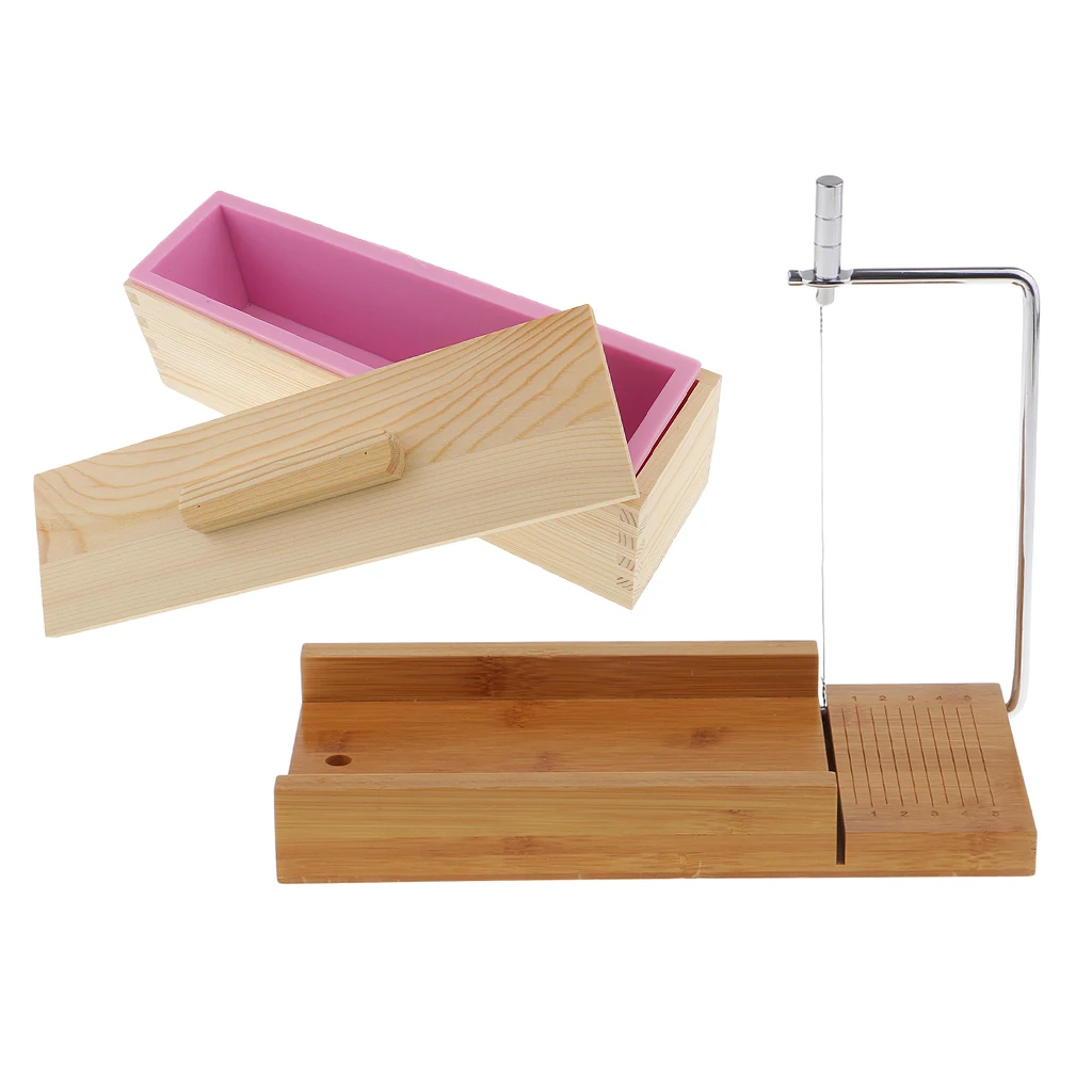 Деревянный Нож для мыла с проводным слайсером + силиконовая форма для изготовления мыла 900 мл с деревянной коробкой (включая подходящую крышку)