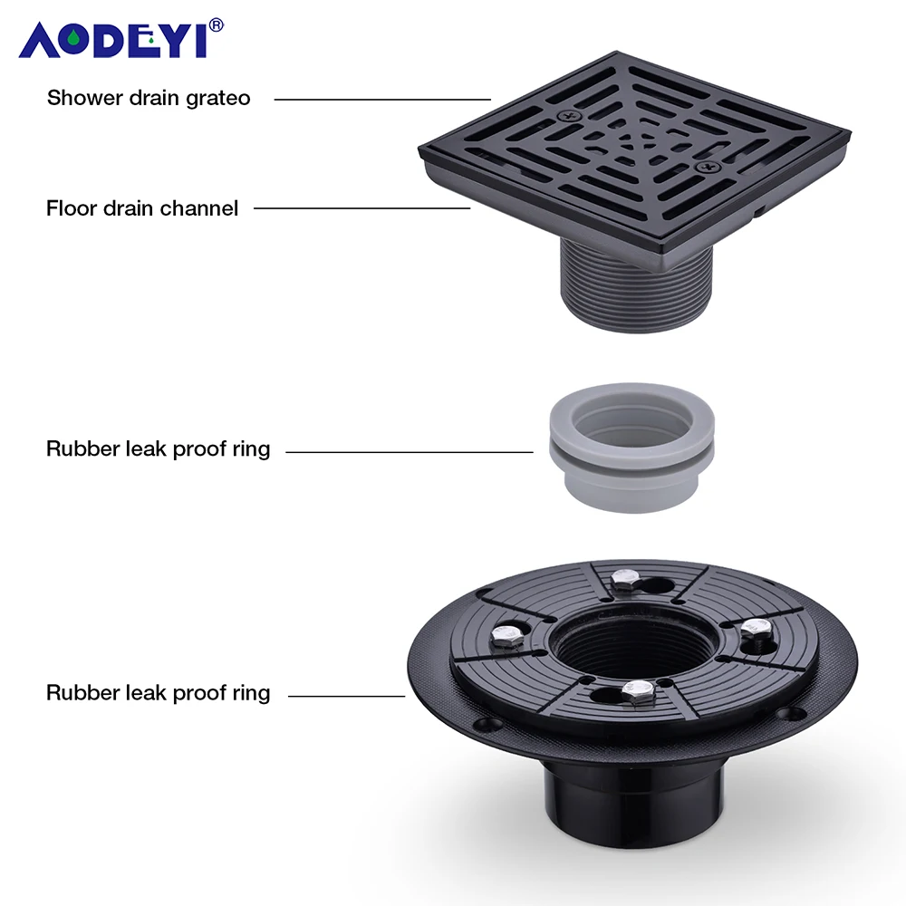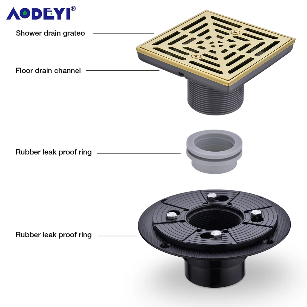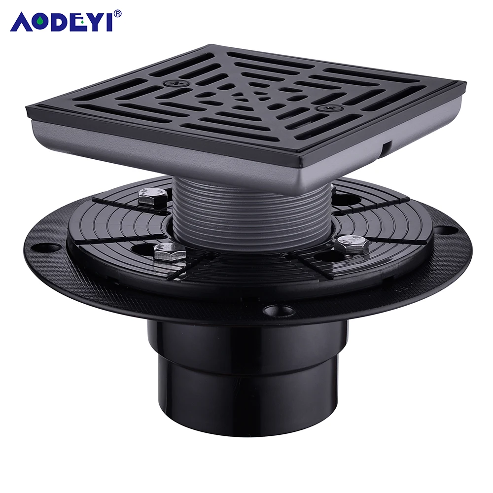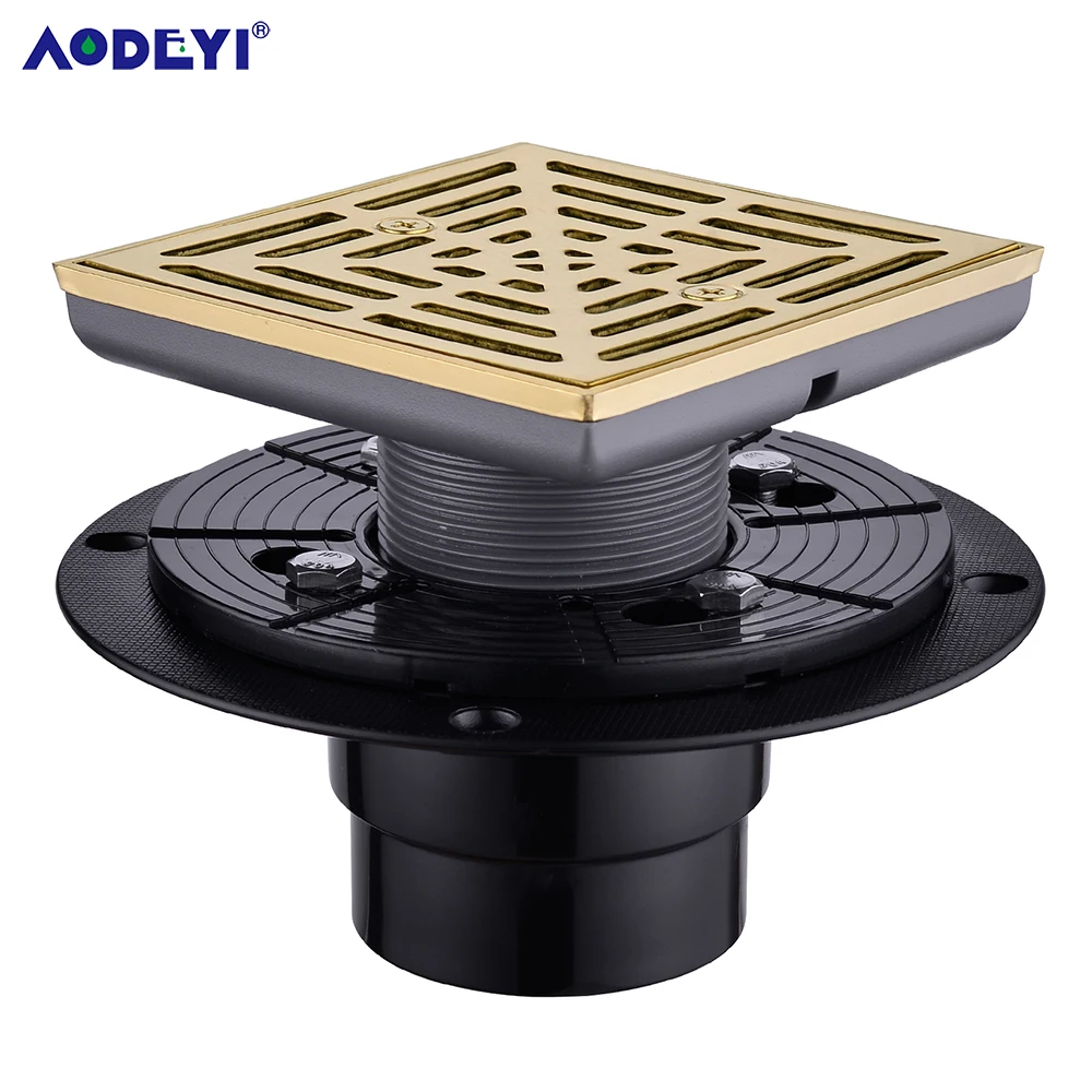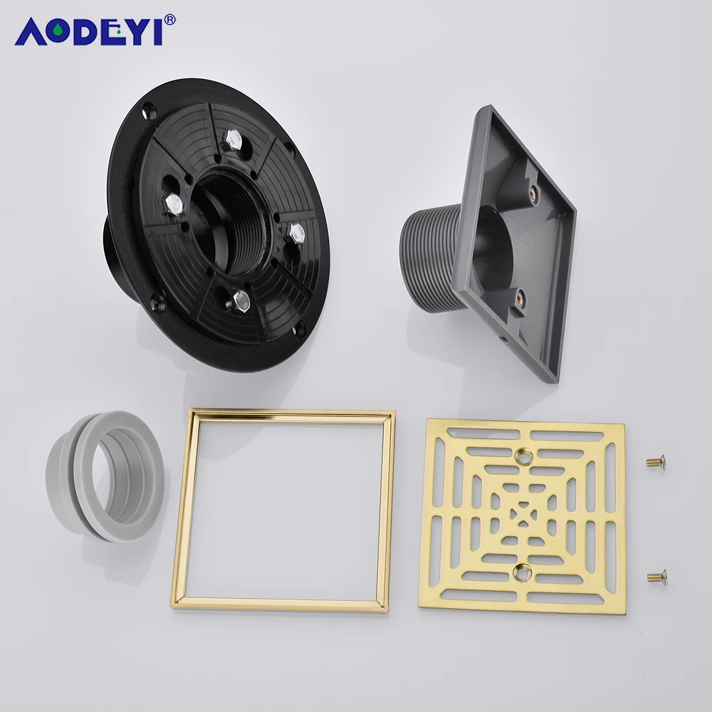 Матовая Золотая квадратная душевая решетка из нержавеющей стали, сливное отверстие для отработанного пола, черные решетки для ванной комнаты, сливное сито, фланцы, муфта