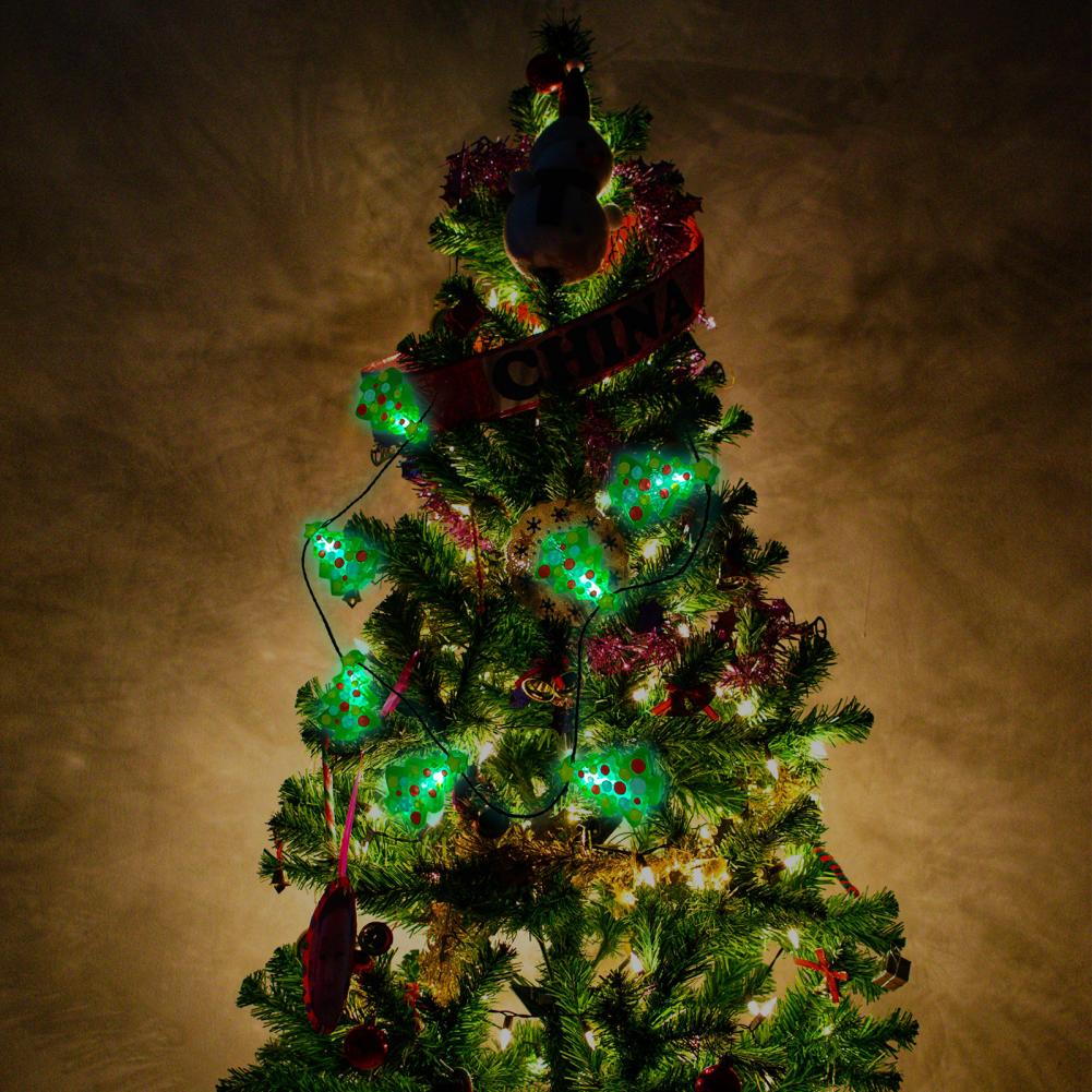 You can adopt the light necklace with green color and lighting function to decorate your bedroom, book room, or dining room beautifully as it is with vivid Christmas tree style.