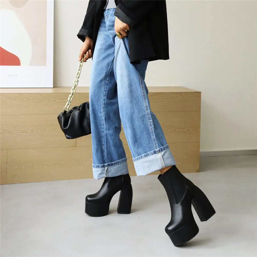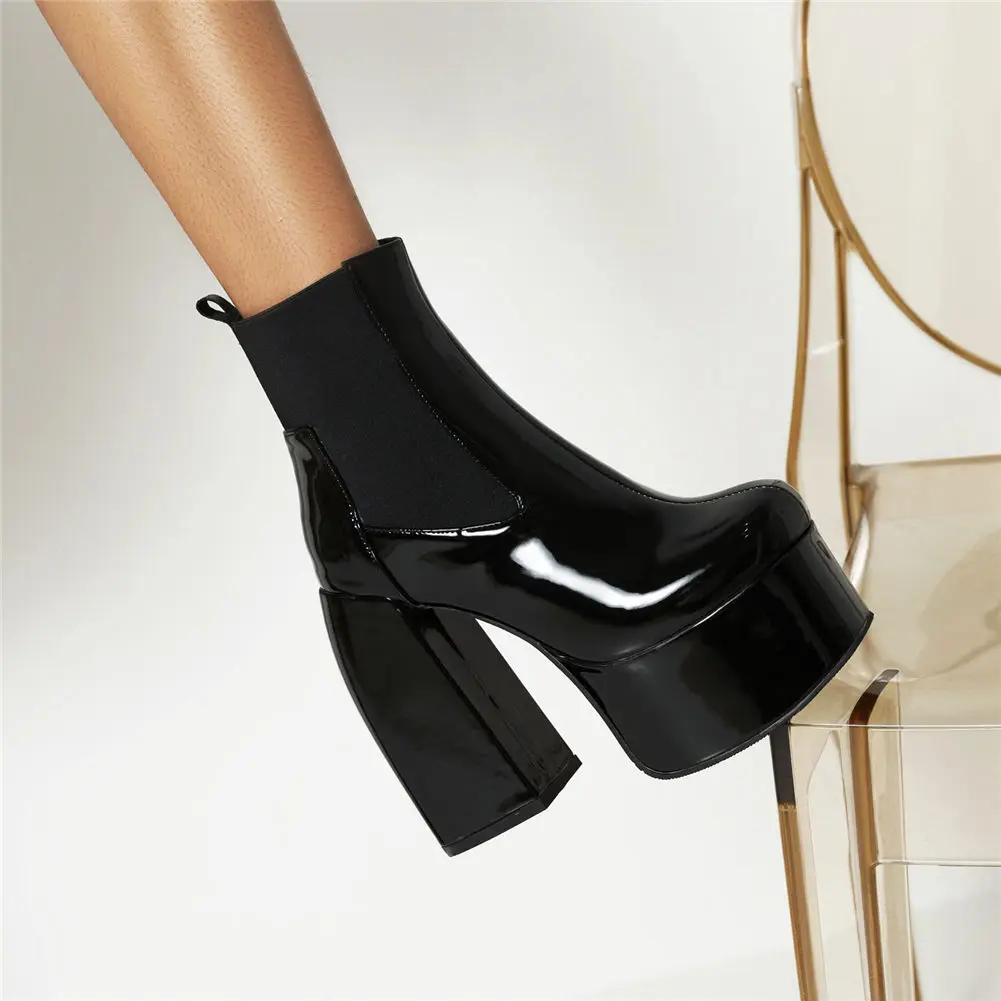 Ботильоны женские из лакированной кожи мотоциклетные ботинки на массивной