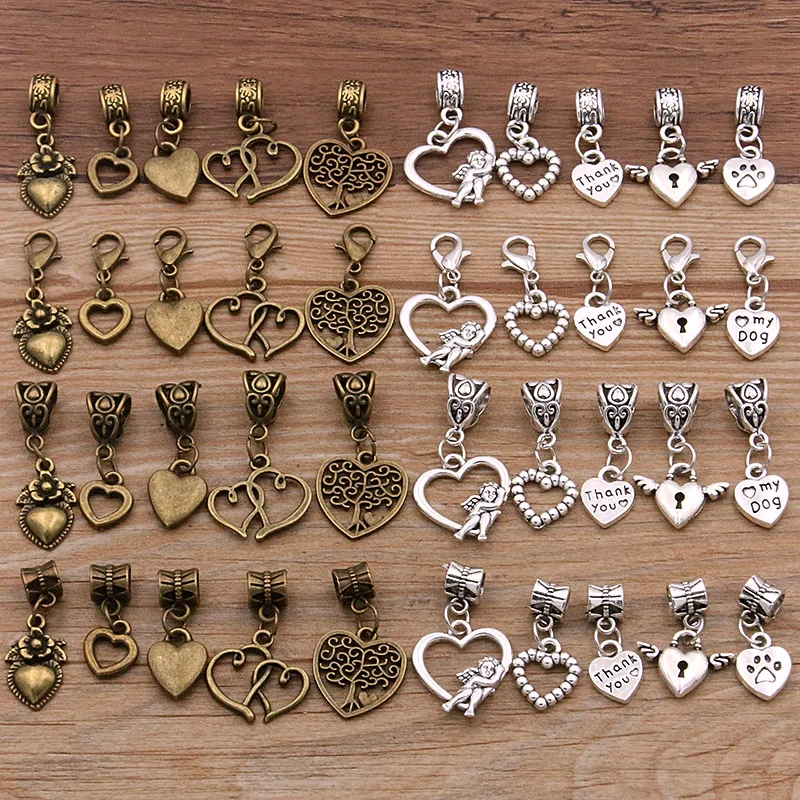 Микс 10 шт 4 стиля 2 цвета сердце очарование Омаров застежка Подвески винтажные бусы подходят для женщин браслеты Сделай Сам металлические ювелирные изделия