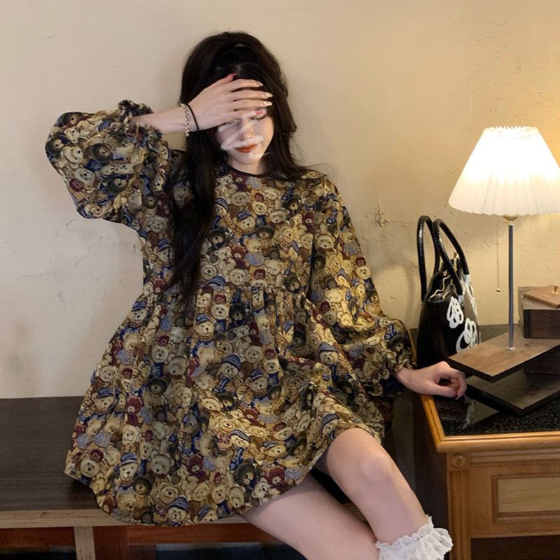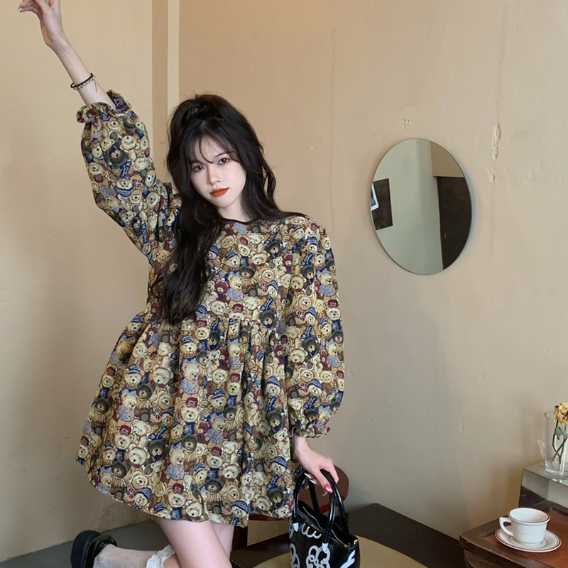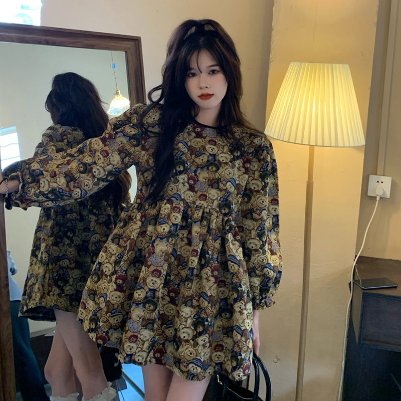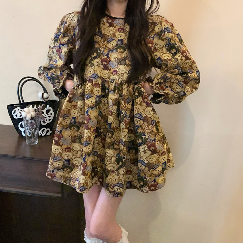 Шикарное осеннее милое платье в черный белый горошек с круглым вырезом и