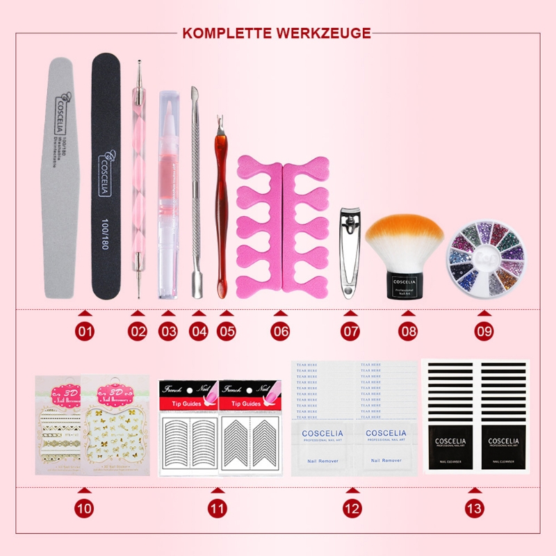 Professional gel nail polish kit: kit for a gel beginner, basic nail manicure tools will help you complete the process of your nail art, save money from nail salon.You will have professional manicure nail kit tools you need.