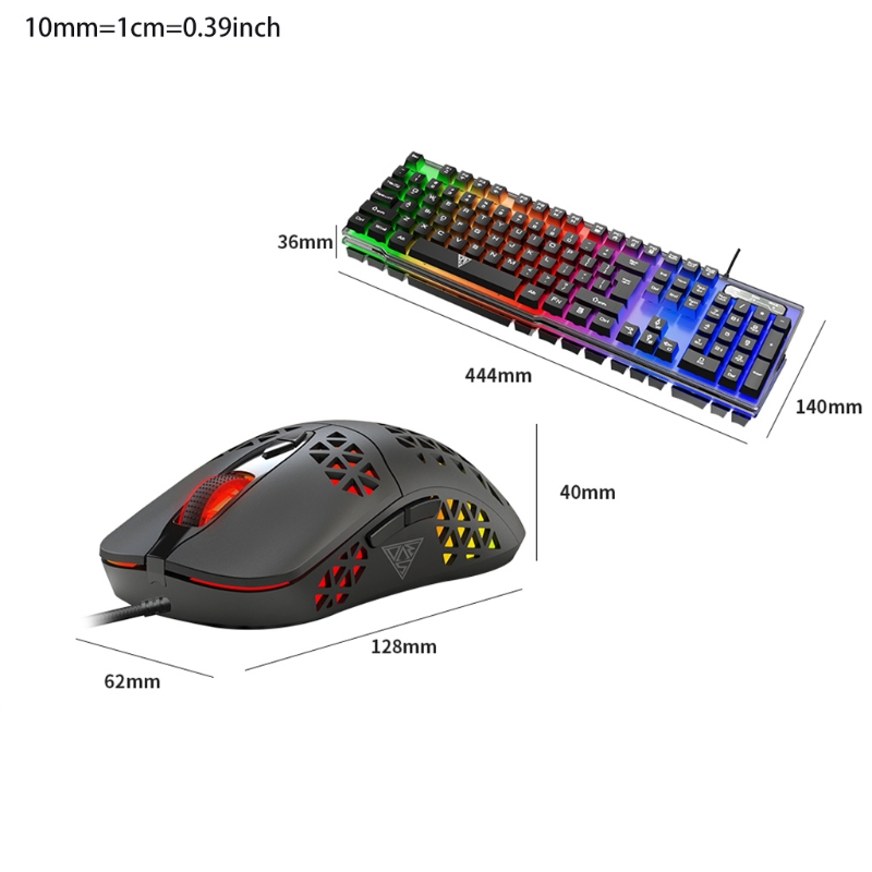 R58A Проводная игровая клавиатура мышь комбо светящаяся игровая клавиатура мышь эргономичная полноразмерная клавиатура мышь (черный) 3200 точек/дюйм