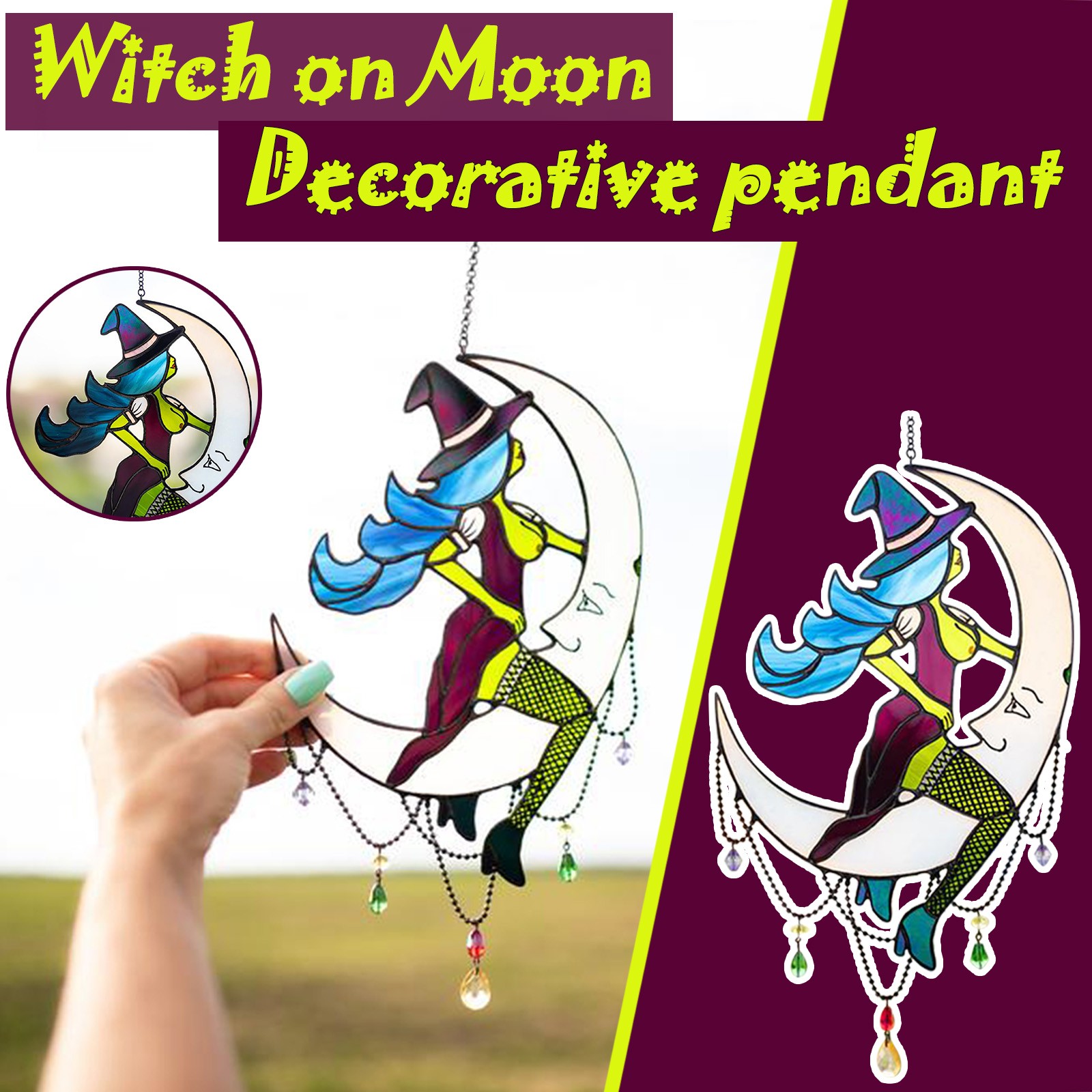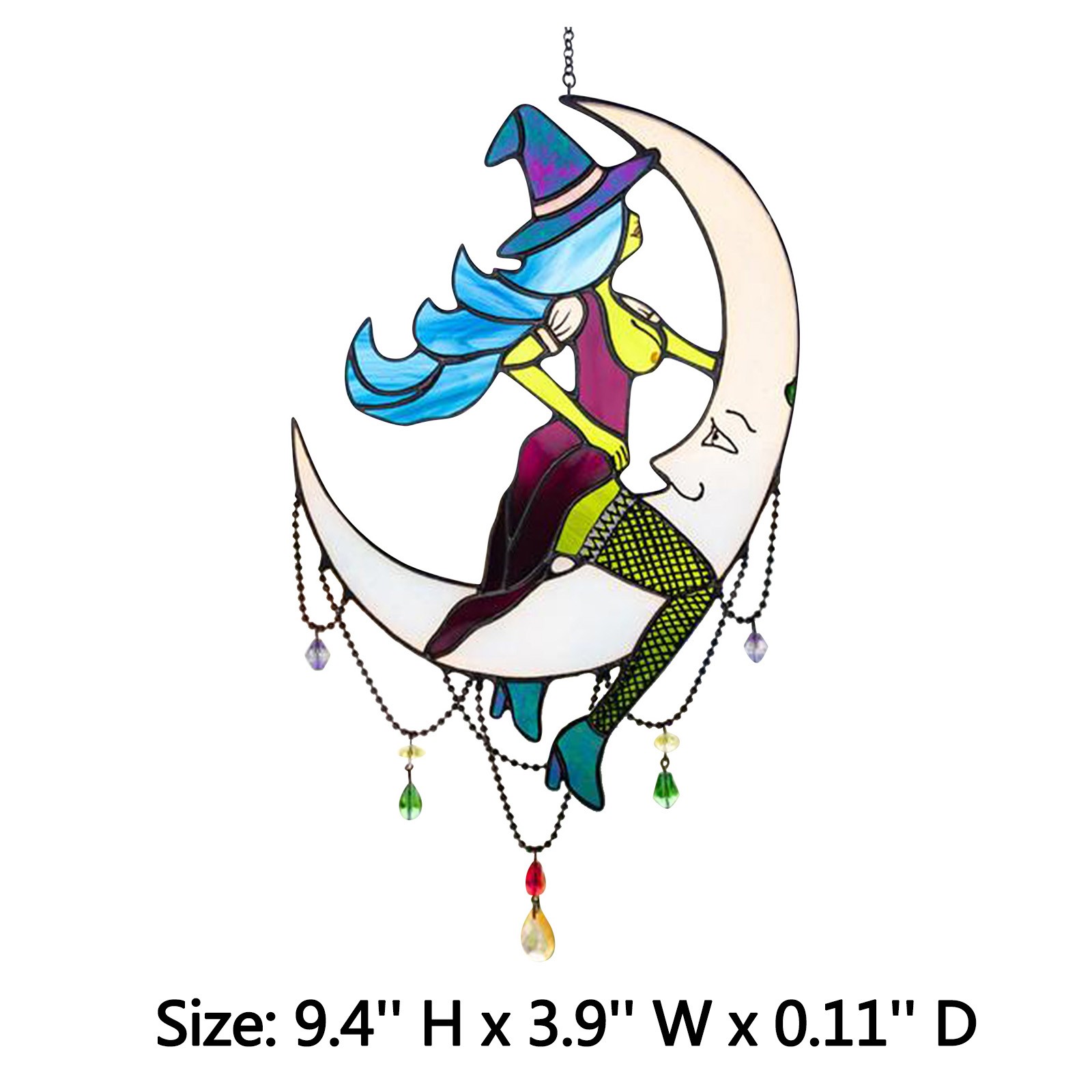 Витражная акриловая ведьма, висящая, загорает, ведьма на Луне, Декор, витражная ведьма