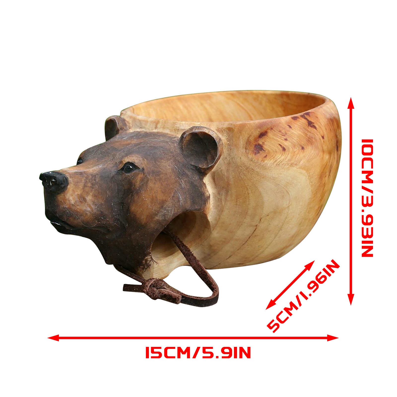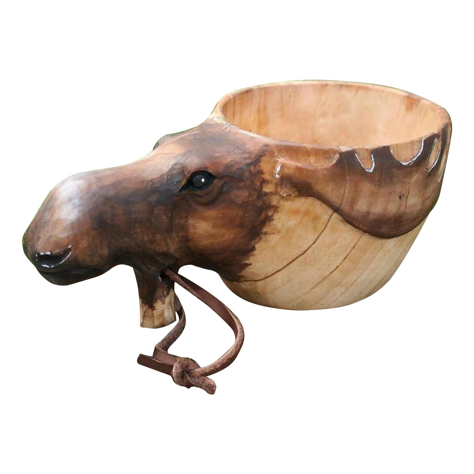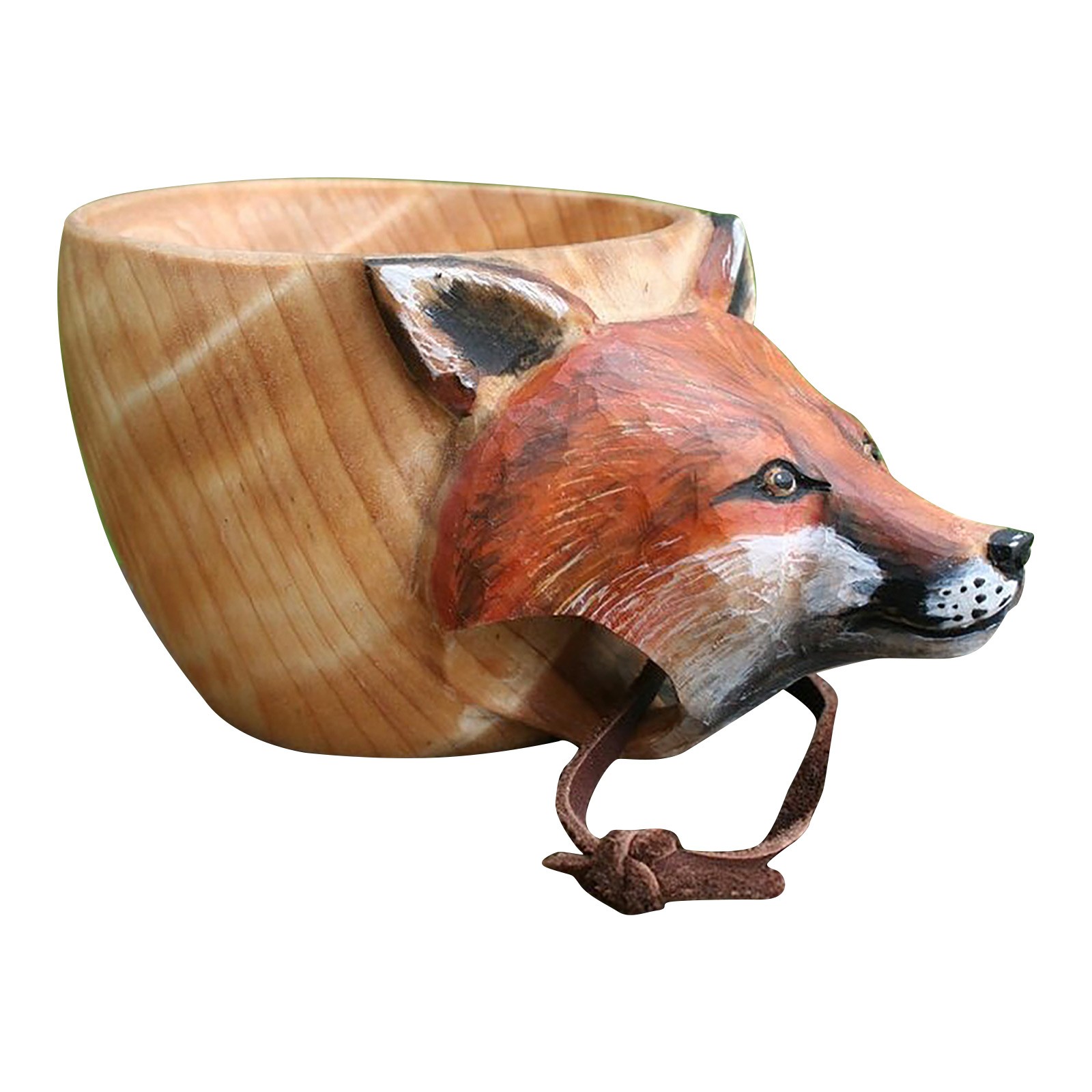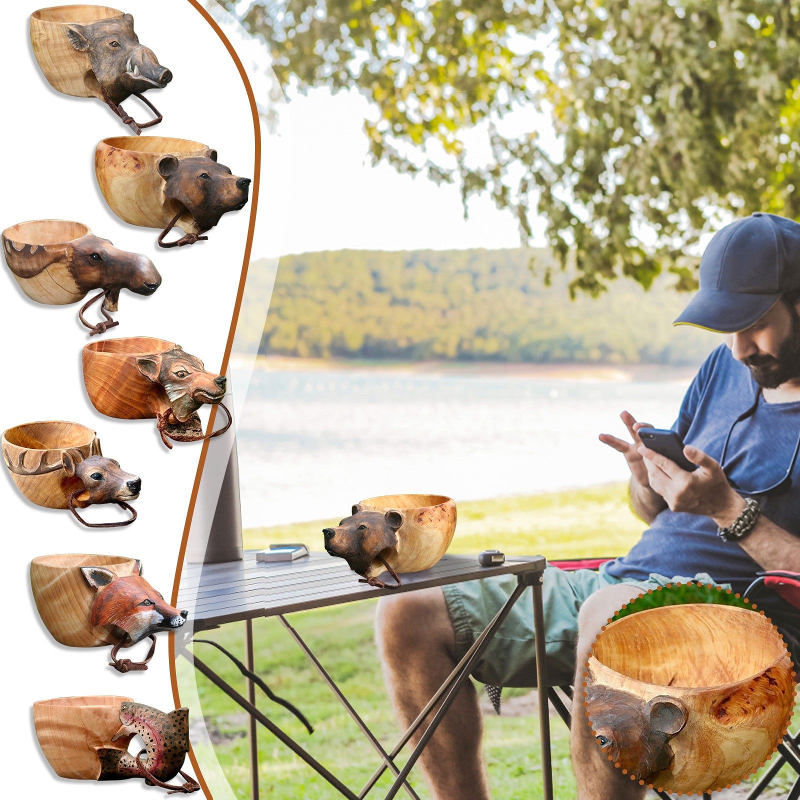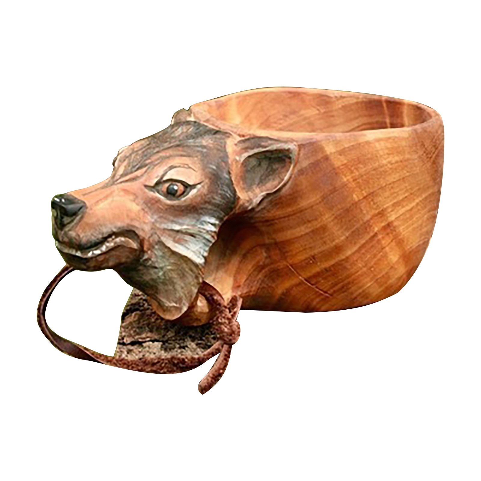 Ручная резная деревянная кружка с изображением головы животных для путешественников на открытом воздухе кемпинга