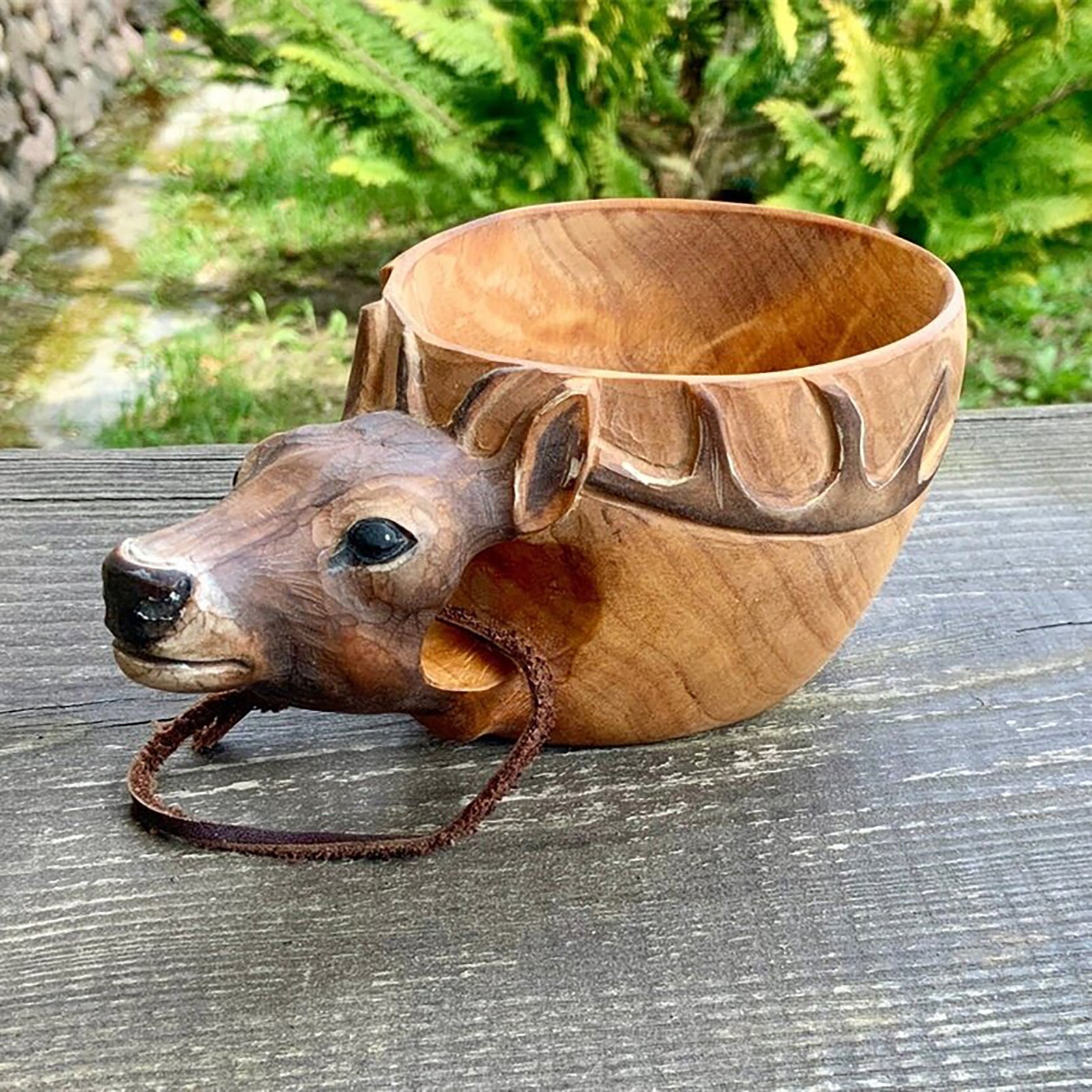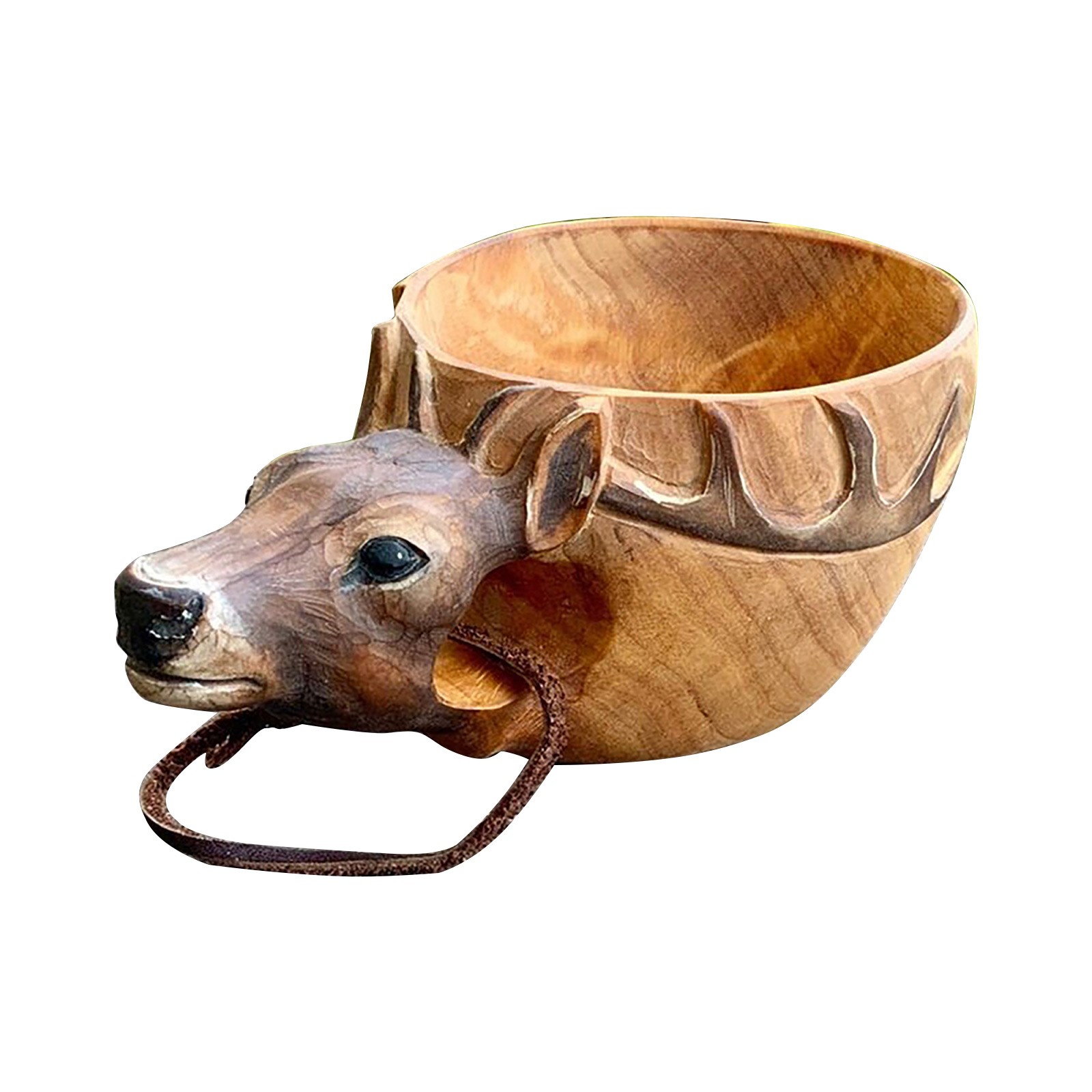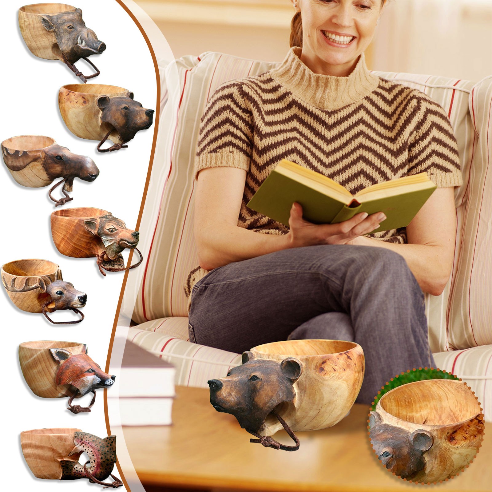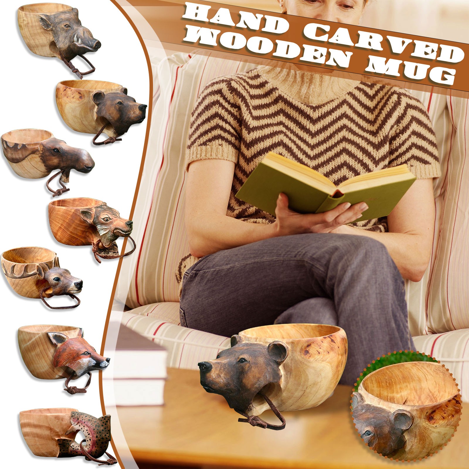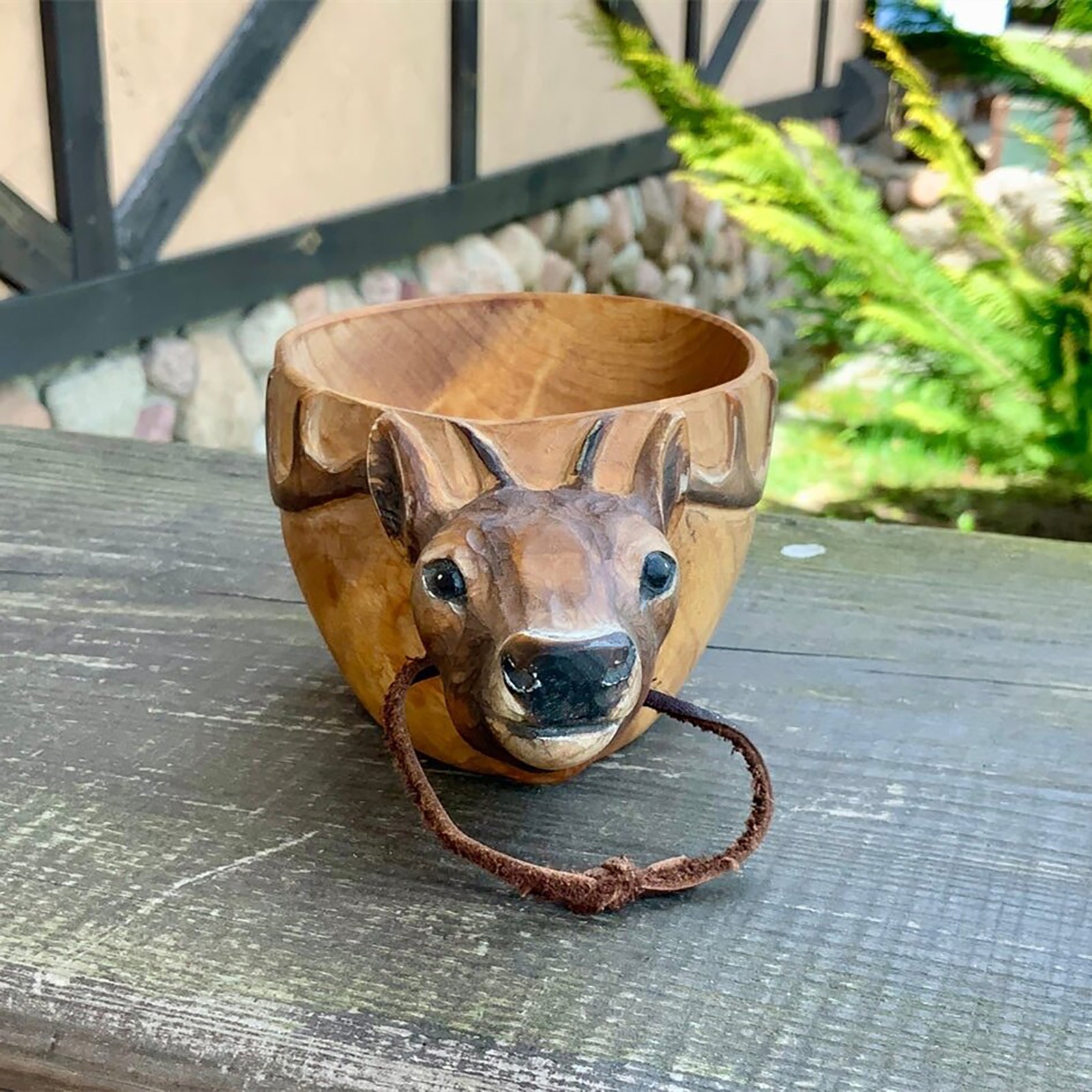 Ручная резная деревянная кружка с изображением головы животных для путешественников на открытом воздухе кемпинга
